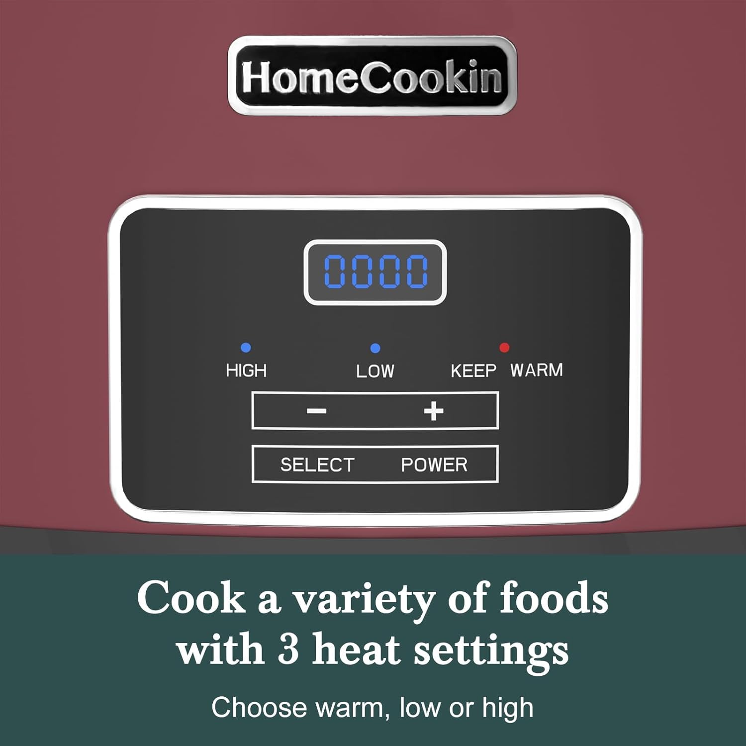 HOMECOOKIN 7-Quart Programmable Slow Cooker with Timer Keep Warm - Small Kitchen Appliance for Family Dinners - Serves 6+ People (Red Shell + White Ceramic Liner)