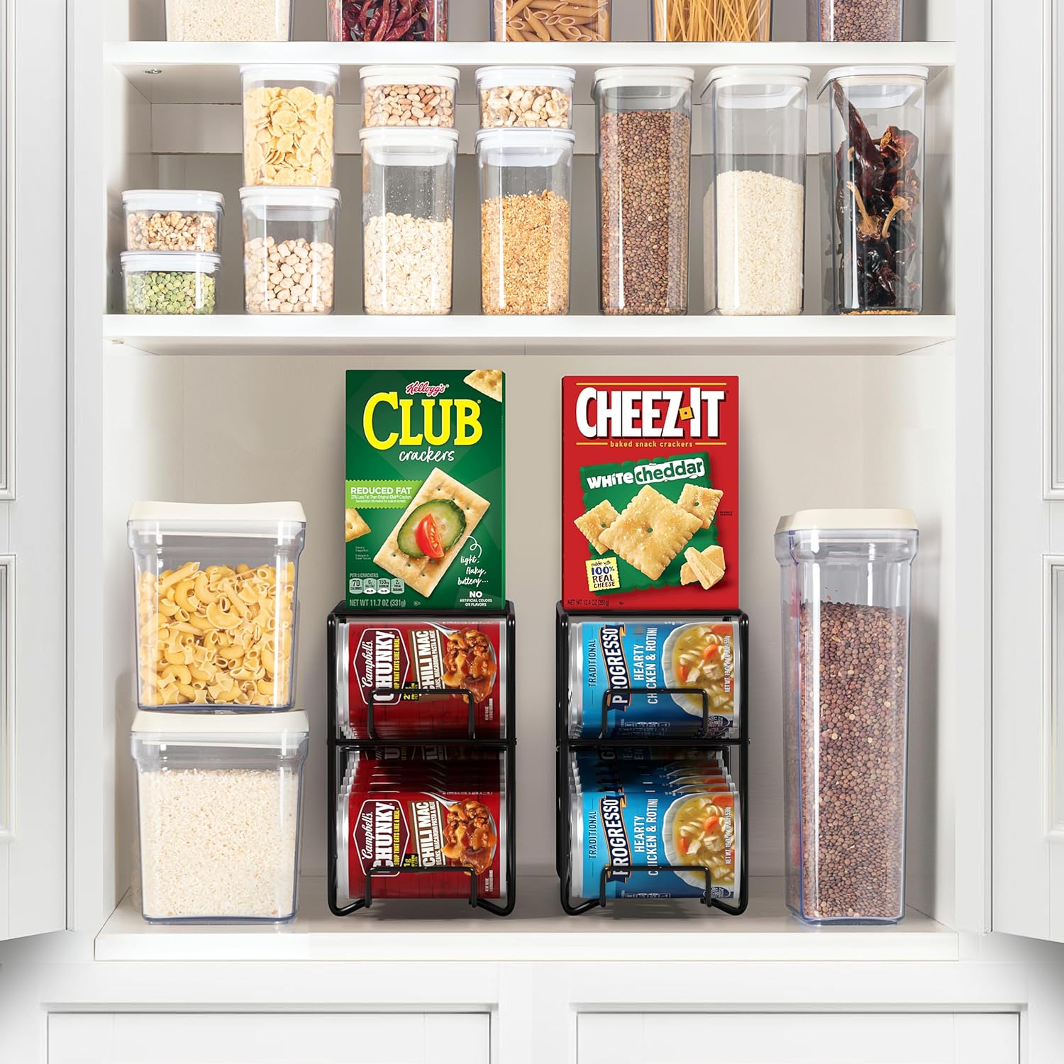 - Sorbus Fridge Can Dispenser (2 Pack, Black): This soda can dispenser for refrigerator holds up to 12 standard 12 oz soda cans, making it easy to access and dispense your favorite beverages. Can rack features a convenient top shelf for additional storage. Organizer also works great for storing small food cans and other pantry items.