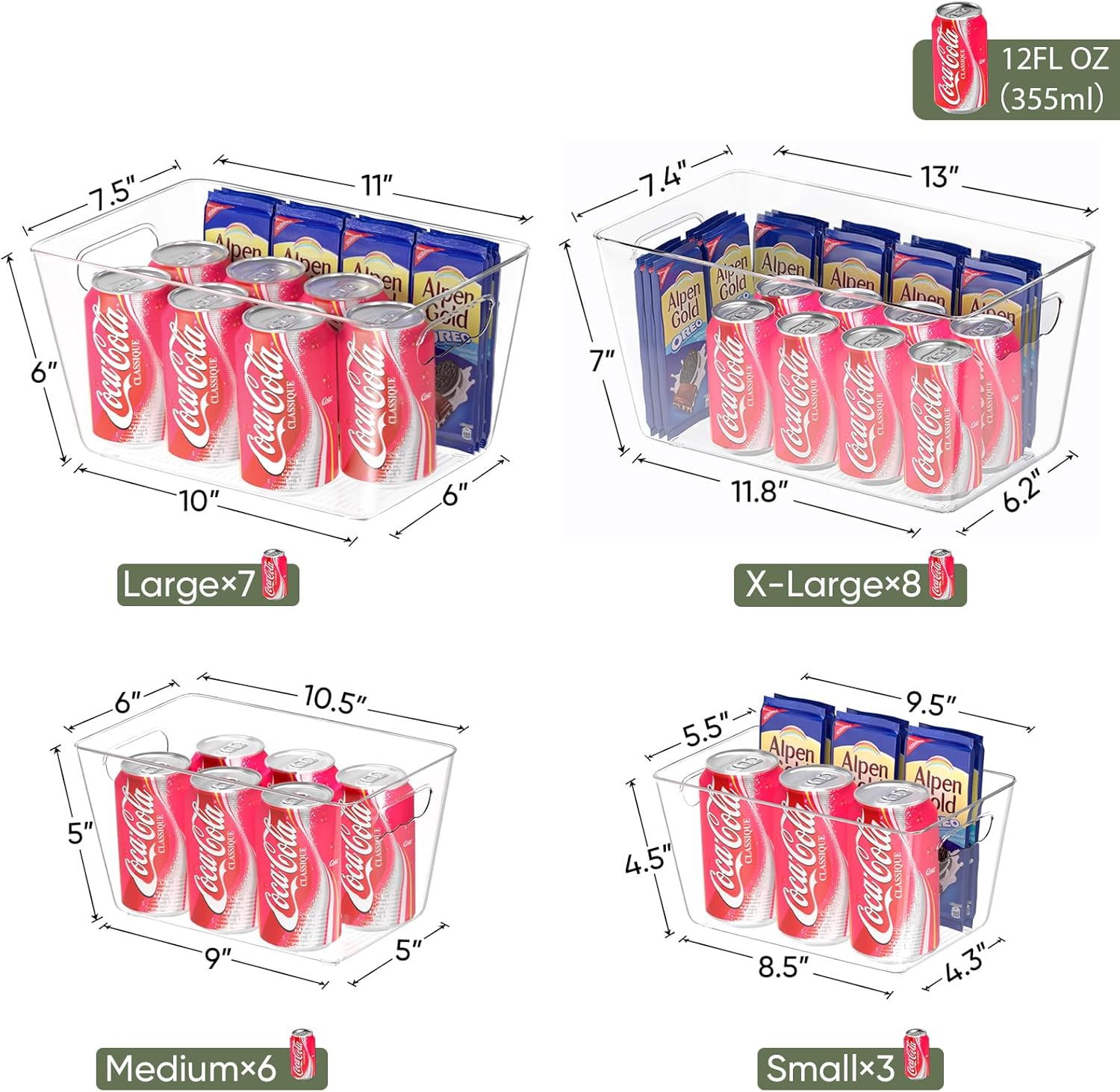 - [OPTIMAL DESIGN] Measuring 13"(L)x7.4"(W)x6.2"(H), this storage bin offers ample space for your kitchen essentials. It perfectly fits in cabinets, pantries, refrigerators, and countertops, making it an ideal choice for various storage needs. The transparent design provides clear visibility of the contents, eliminating the need for constant searching. The open front ensures easy access, allowing you to retrieve items quickly without hassle