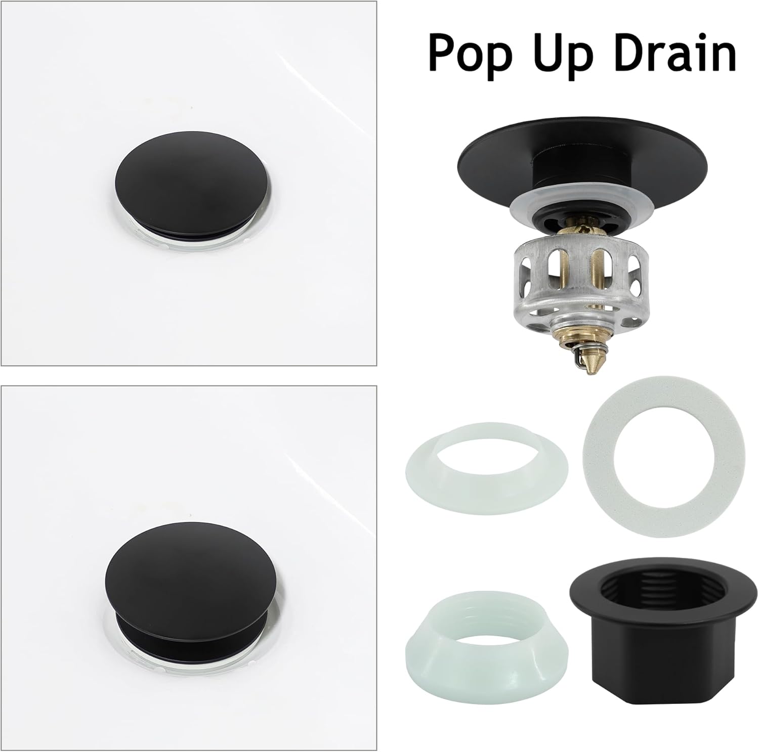 - Beautiful Finish: Matte Black Pop Up Drain, with a combination of clean, refined lines for a high-end style. Build to resist daily scratches, corrosions and tarnishing