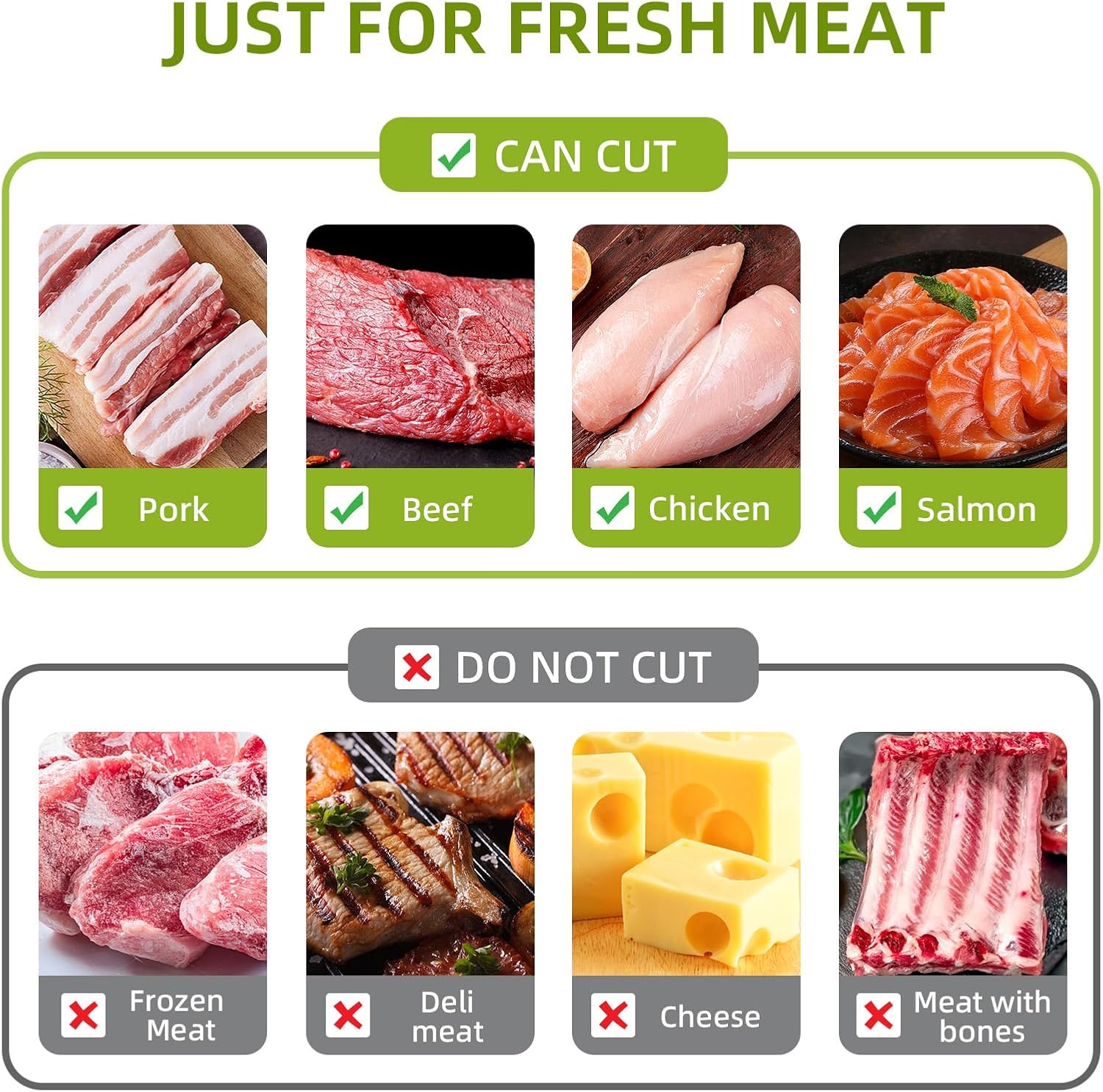 - 【Only suitable for pure fresh meat. Not suitable for meat with bones】: Frozen meat loses some of its nutrients and texture, while fresh meat is more nutritious. The Jonscook meat slicer can slice fresh boneless meats, such as chicken breast, pork, beef, lamb, salmon, and more. Meal prep for the week. Perfect for making jerky, BBQ, hot pot
