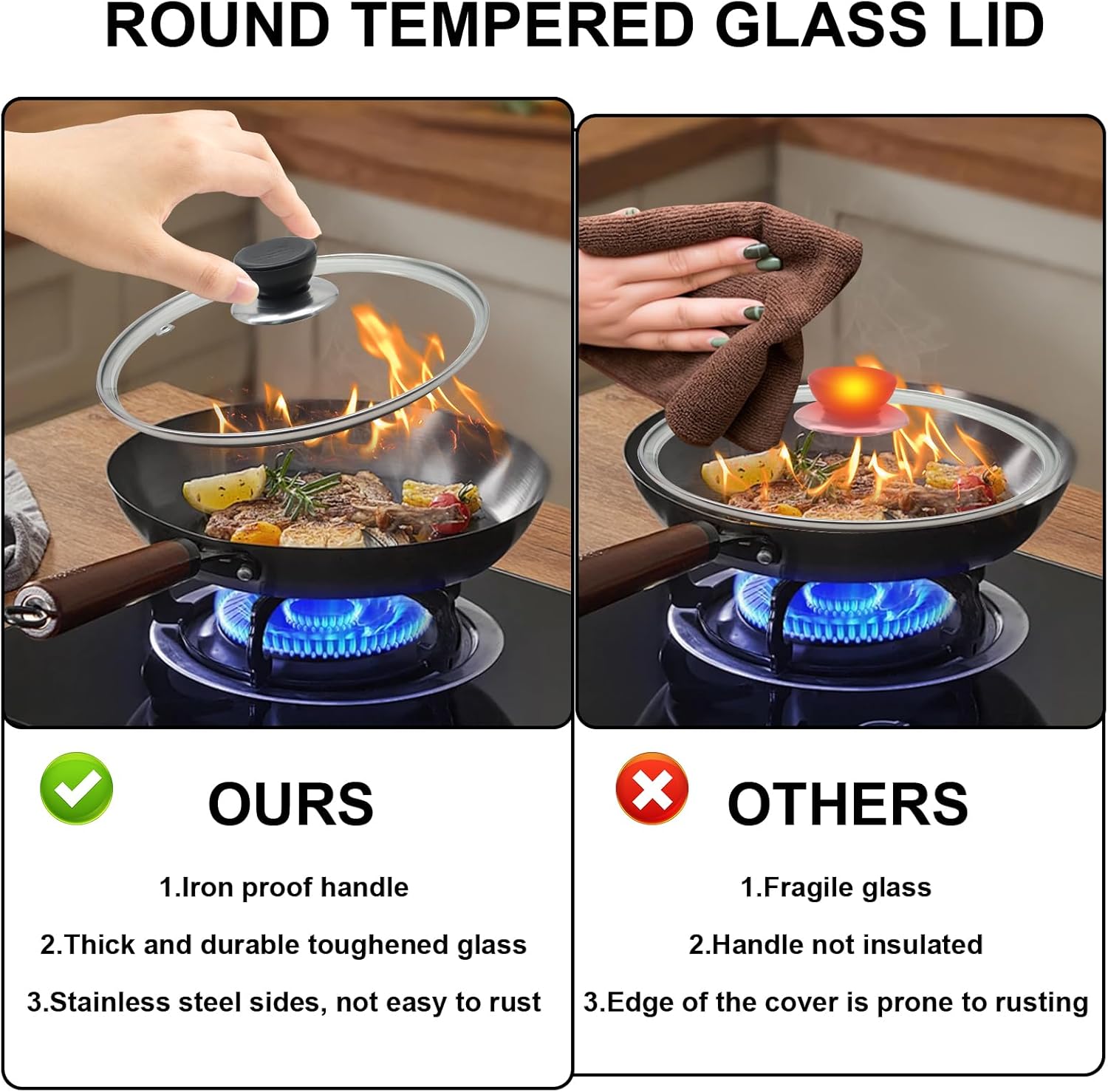 - Stainless Steel Reinforced Edges: The tempered glass lid is equipped with stainless steel edges, which can tightly fit the pot, ensuring safe cooking without rusting, and effectively locking in the taste of food.