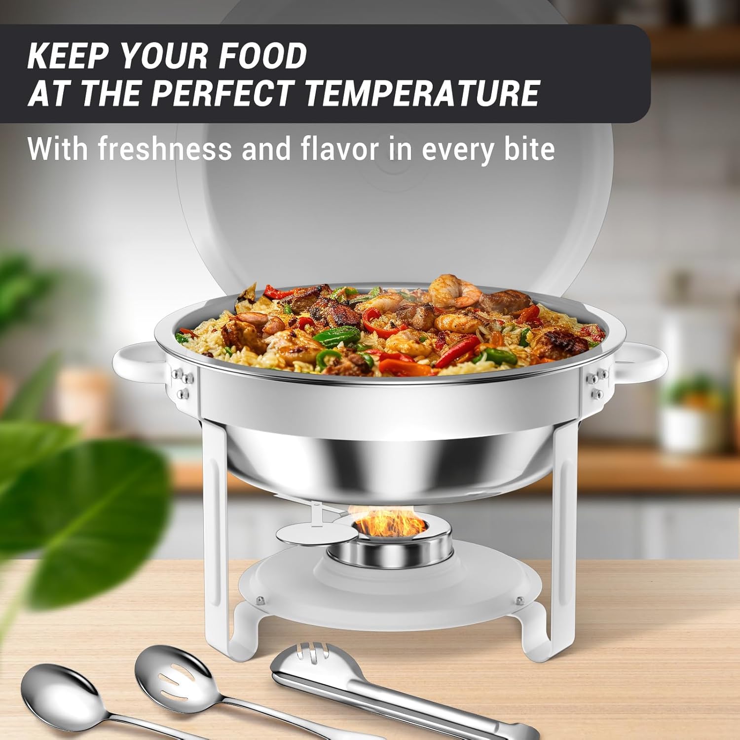 Round Chafing Dishes for Buffet 5 Qt,High Grade Chafing Dish Buffet Set, Full Size Pan,Rolled-Edge Design Food Warmers for Parties,Buffet,Wedding,Birthday,Camping 4 PACK (White)