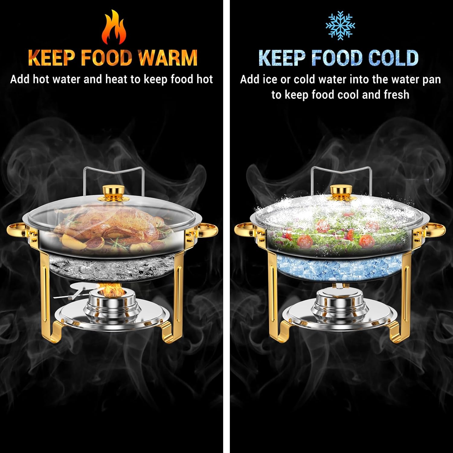 - Lasting Thermal Insulation, Freshness Locking Expert:The Chafing Dishes for Buffet is crafted from high-grade stainless steel, offering excellent thermal insulation and durability. The innovative water vapor circulation and precise constant temperature ensure food freshness. Ideal for all kinds of parties, the chafing dish is easy to use and provides an extraordinary light meal experience.