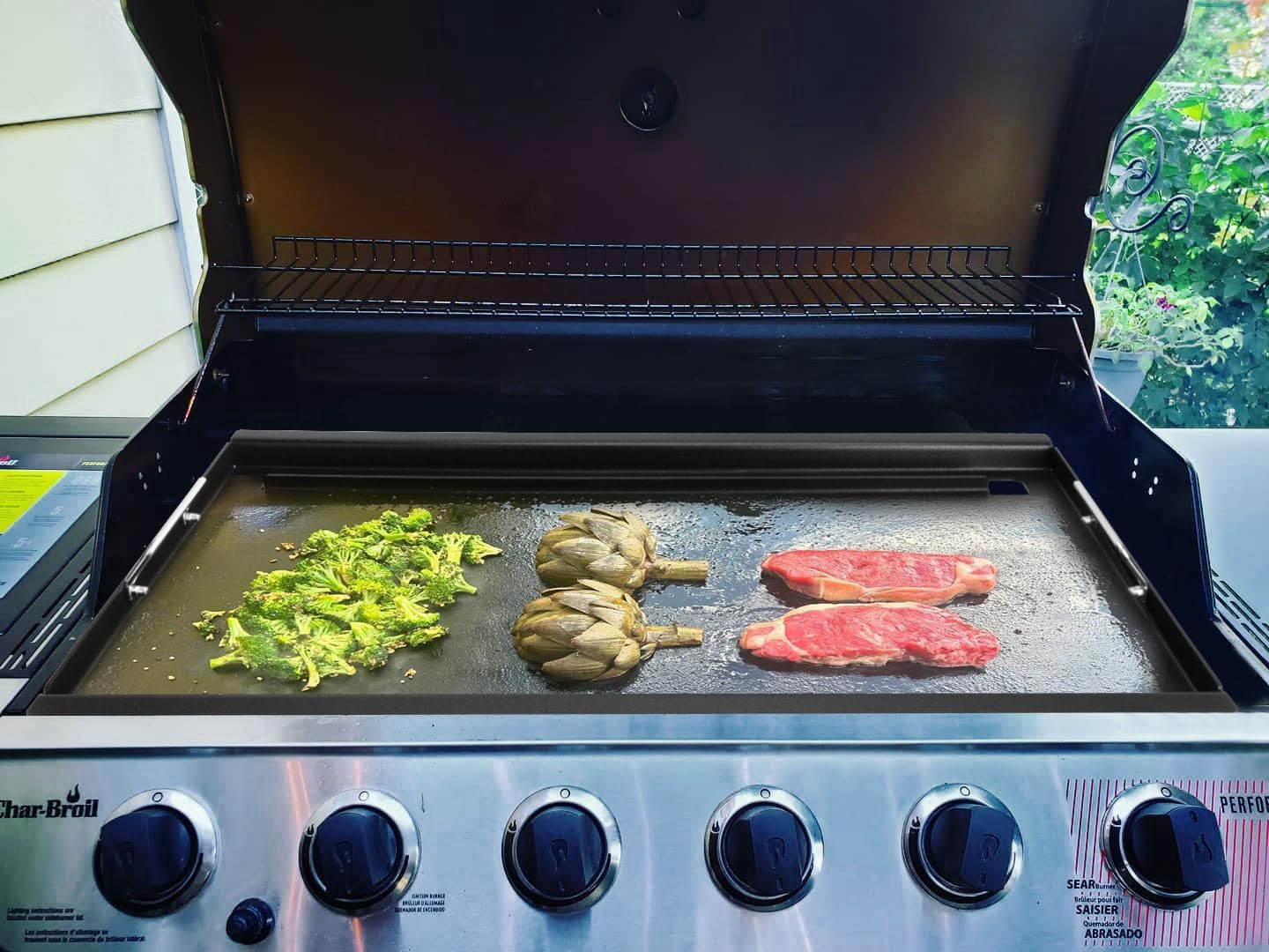 - 【Perfect for Charbroil Performance 6 Burner Series Grills】Flat Top Grill Griddle compatible with charbroil Grills model 463245917, 463274419, 463276517, 463277918, 463244819, 463238218, 463240420, 463276617, 463274719, 466245917 Grills.【Note】Because the Performance Series grills are manufactured in different years, the dimensions vary, so please check whether the front and back of the grill is 17 inches or 18 inches in length before purchasing.