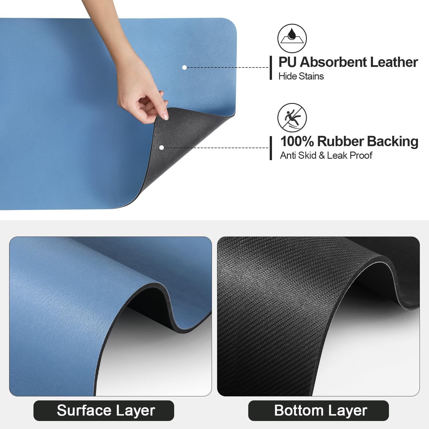 - 【Easy to Clean】 Unlike traditional cloth or other kitchen counter mats, the special PU material surface effectively hides stains from water, coffee, and milk, saying goodbye to messy and stained countertops.