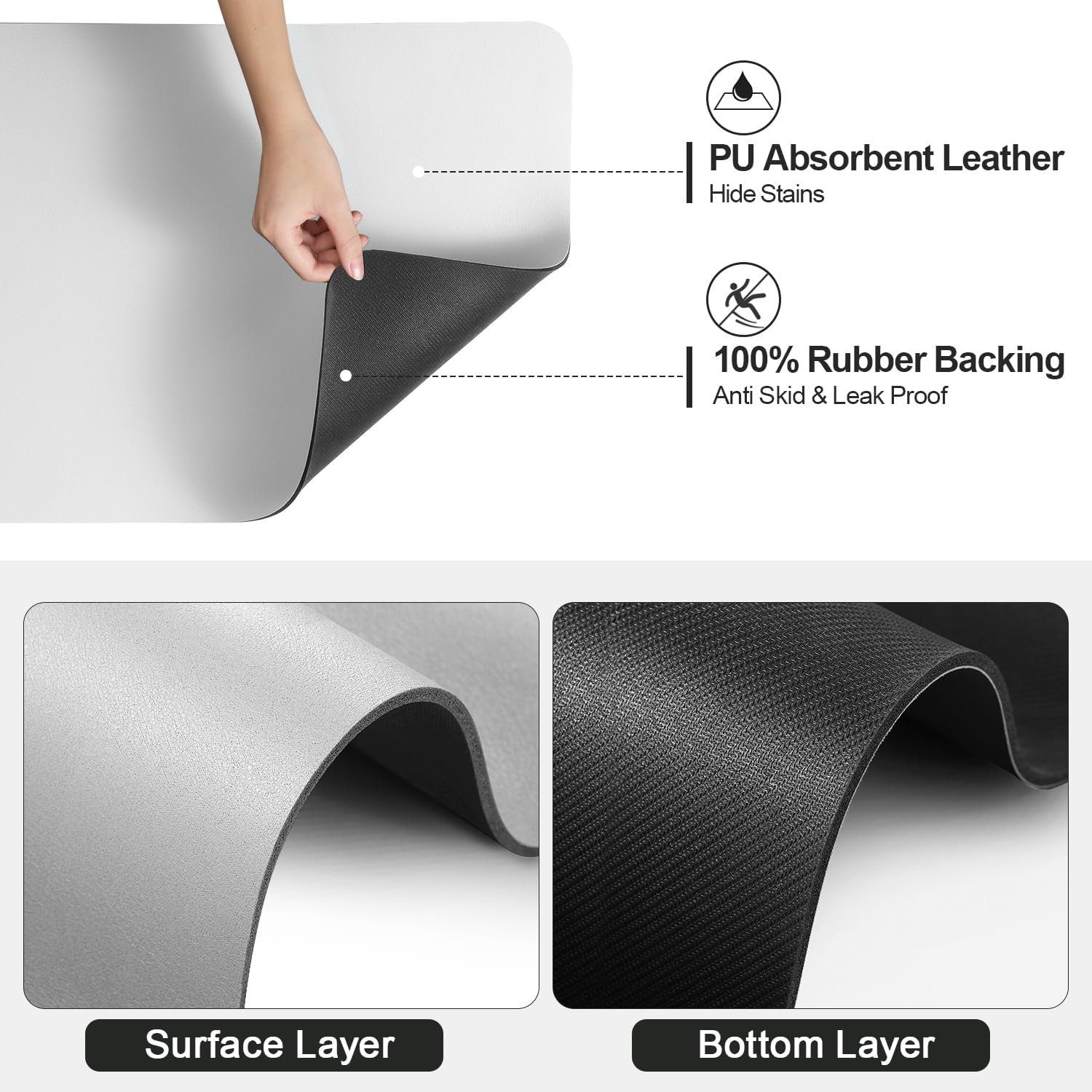 Dish Drying Mat for Kitchen Counter | Coffee Bar Mat for Countertops | Heat Resistant Drainer Mat with Non-slip Rubber Backed | Hide Stain Kitchen Absorbent Draining Mat | Light Grey 18"x28"