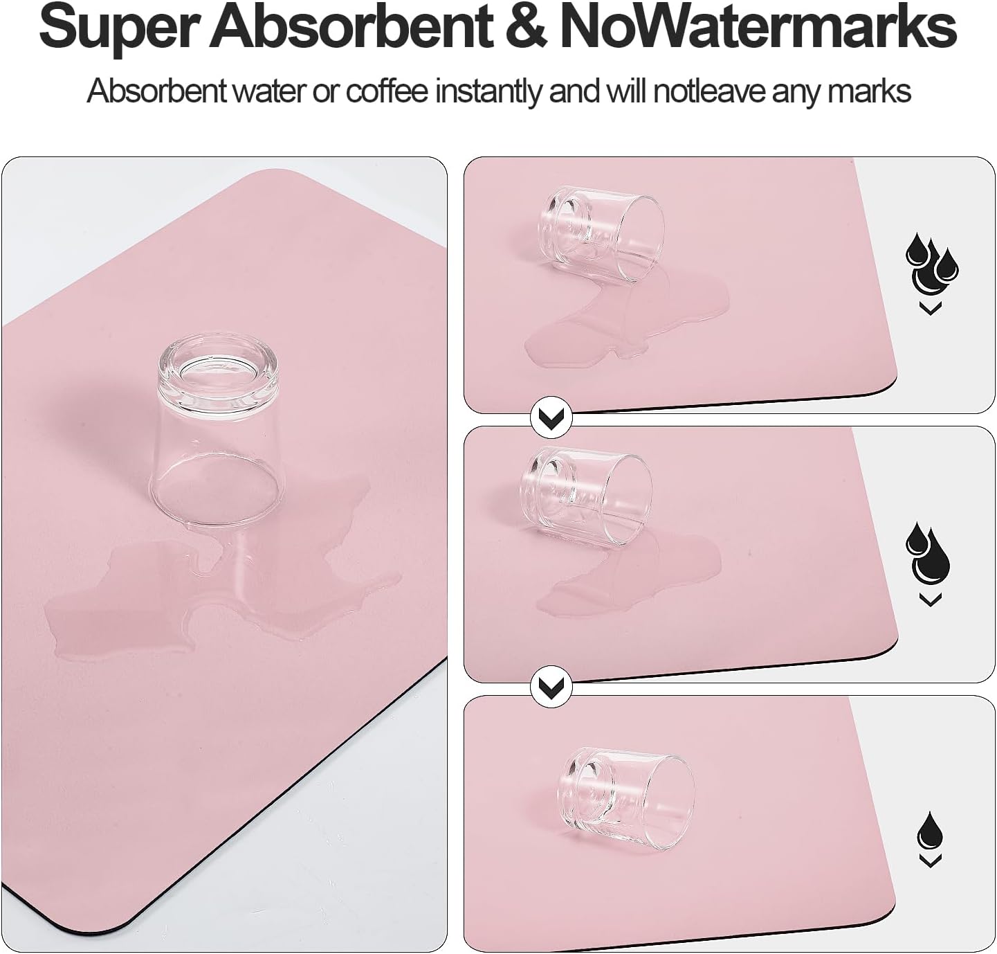 - 【Quick Absorption】 The soft diatomite dish drying mat instantly absorbs any liquid without staining your countertop.