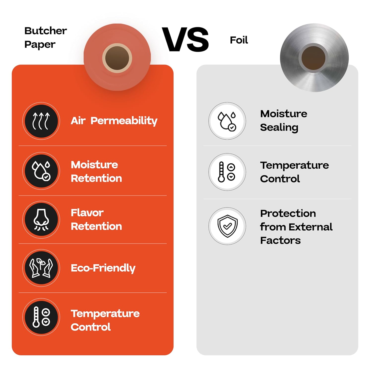 - SUPERIOR TO FOIL: Our butchers paper outperforms foil with its breathable texture, which prevents meat from drying out and enhances flavor. It ensures even cooking, making it an excellent natural alternative, delivering exceptional results