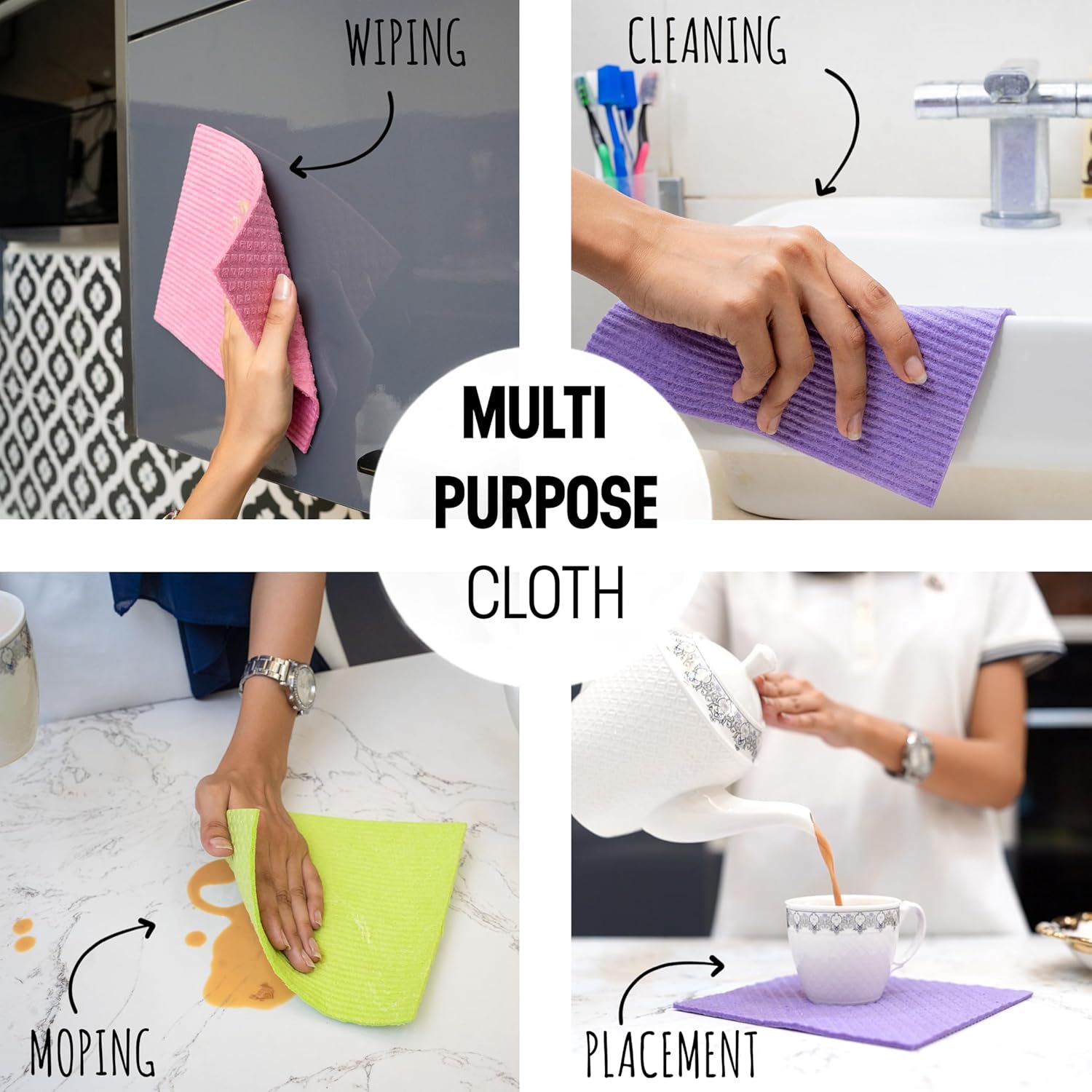 - VERSATILITY: Our disposable dish cloths for washing dishes are perfect for various cleaning tasks like scrubbing dishes, wiping countertops, or cleaning glass surfaces, these Swedish dish towels for kitchen provide a streak-free shine. Use our kitchen cloths for dishes for an effective clean. These reusable cloth paper towels are also safe for marble, stainless steel, and wood. These sponge cloth kitchen reusable work perfectly for all purposes. Use our dish wash cloths for a sparkling clean.