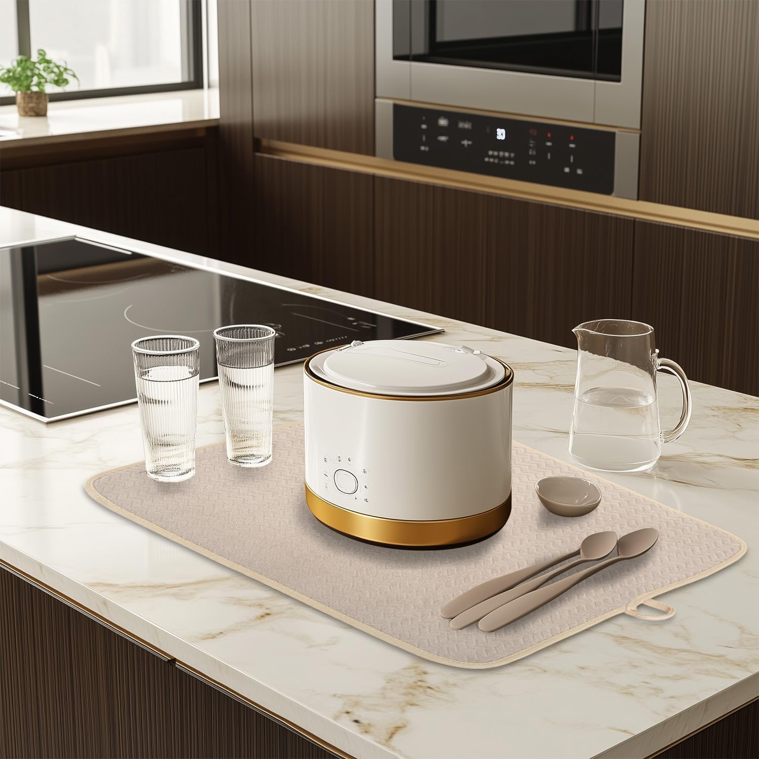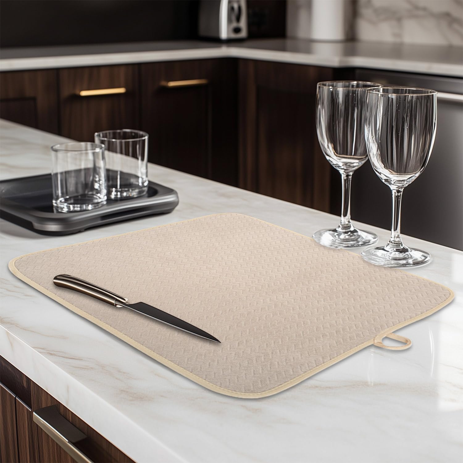 Dish Drying Mat, Highly Absorbent Microfiber Kitchen Counter Mat Value Pack, Dish Drying Pad for Dishes, Utensils, Pots and Pans, Large 16" x 18", Khaki