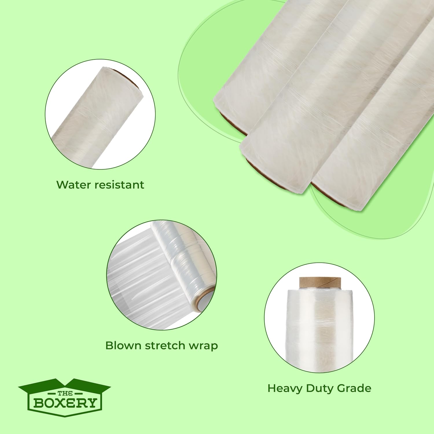 The Boxery- 18''X1500' Per Roll Stretch Wrap-4 Rolls/6000 Feet Total (80 Gauge) - Heavy Duty Grade, Stretch Wrap Film Clear Cling Plastic for Shipping, Moving and Packaging