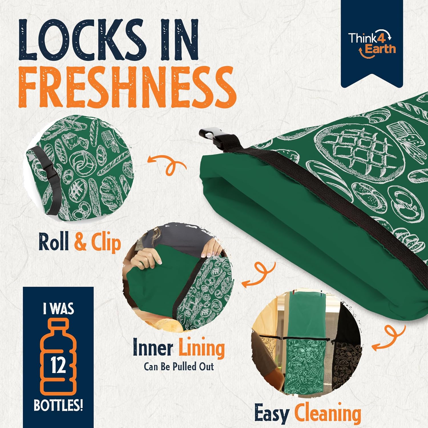 - ECO-FRIENDLY & REUSABLE BREAD BAGS: Opt for our reusable bread bags made from recycled plastic bottles as a planet-conscious alternative to disposable plastics. Contribute to a greener future while keeping your homemade or professional bakery products fresh with Think4Earth's sustainable food storage solutions. Crafted from 12 BPA-free, food-safe recycled plastic bottles, these vegan-friendly, 100% recyclable bags make a positive impact.