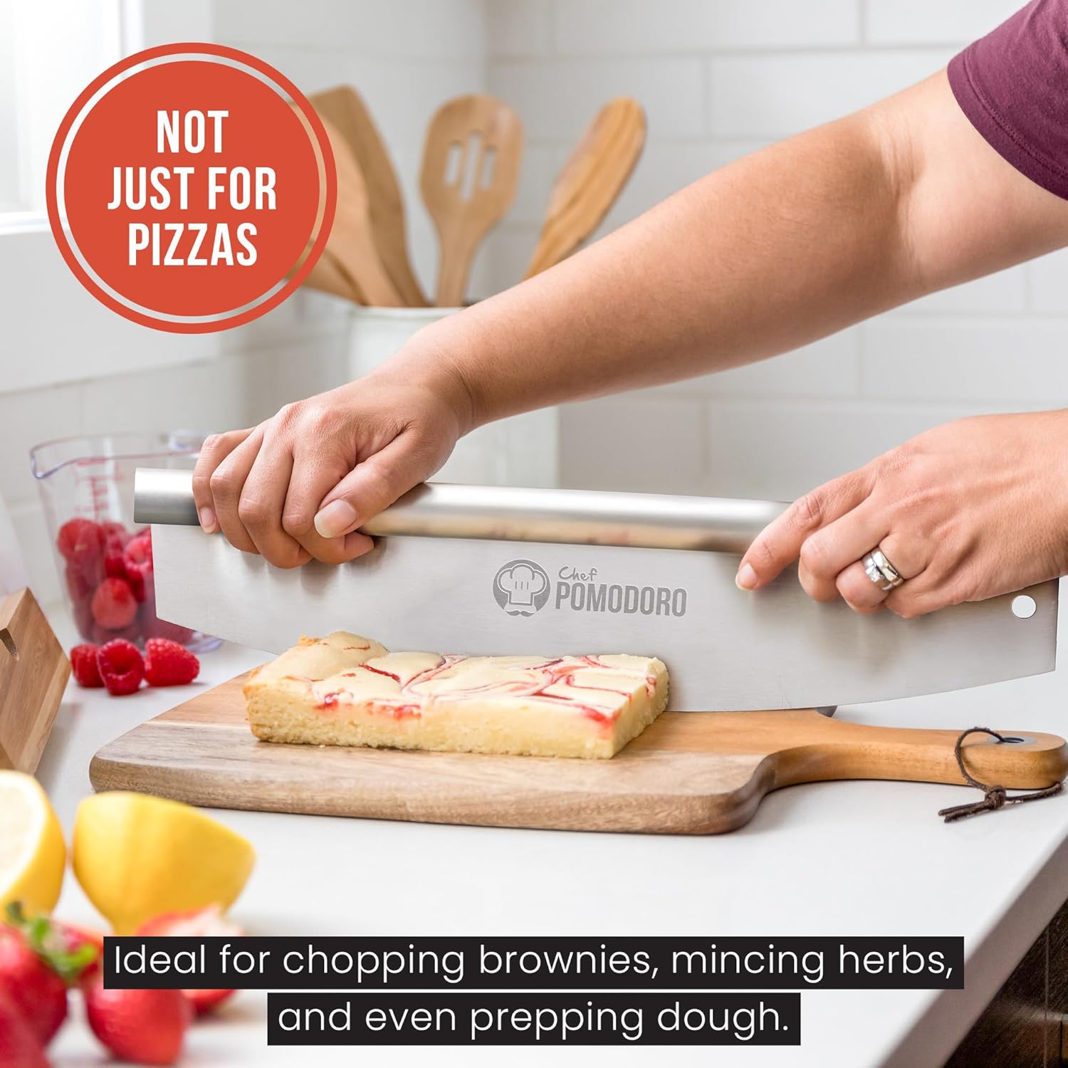 - VERSATILE BEYOND PIZZA: This rocker knife isn’t just for pizza—use it as a pizza knife to chop herbs, cut brownies, slice flatbreads, and mince vegetables. A must-have multitool for chefs, bakers, and home kitchens aiming for clean, consistent cuts.