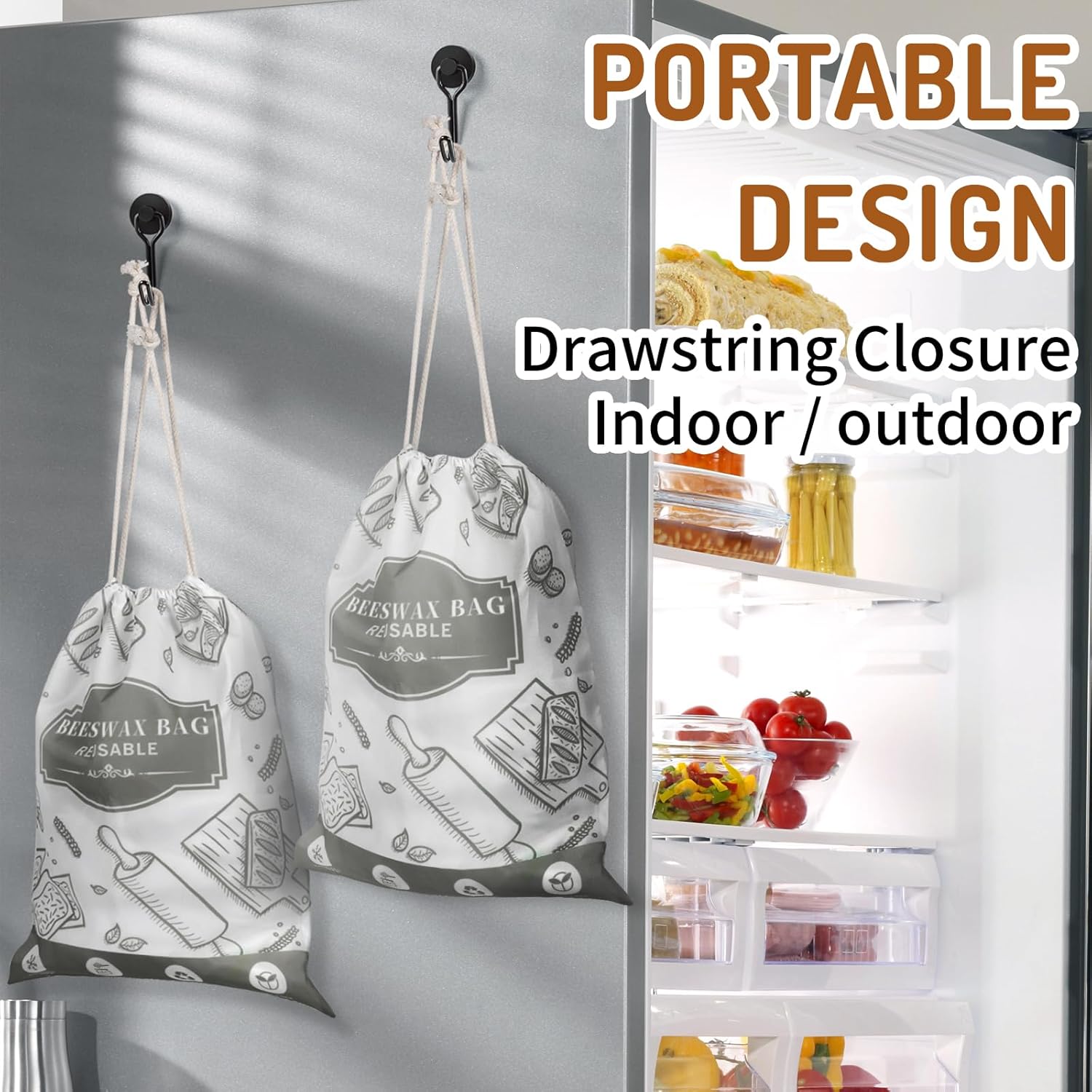 2-Pack Beeswax Bread Bags for Homemade Bread, Grey Reusable Sourdough Storage Bags with Premium Beeswax Coating for Loafs Baguette Fresh Keeping,Great Homesteading Essentials and Baking Gifts.