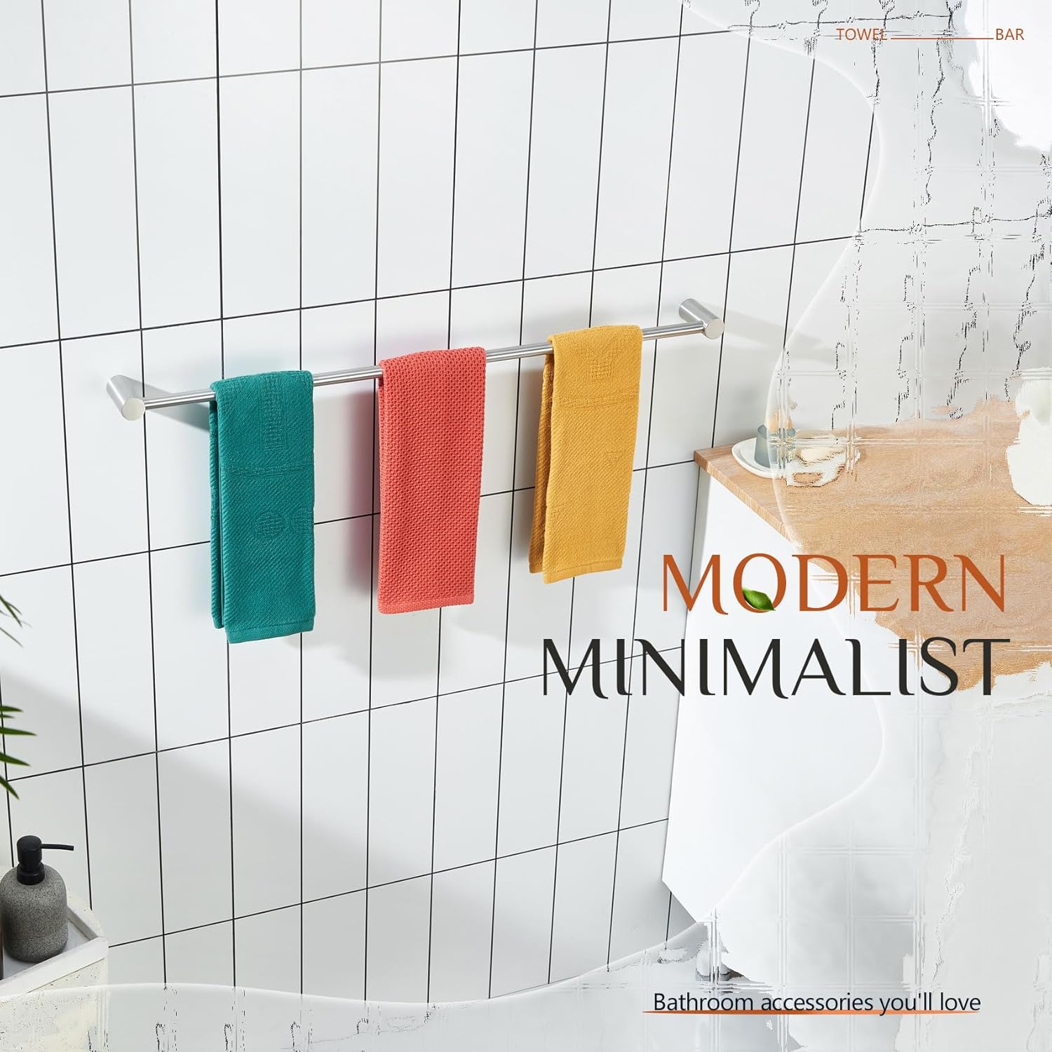 KOKOSIRI Towel Holder Brushed Nickel 36-Inch Towel Rack for Bathroom Wall Mount Single Bar Stainless Steel Bathroom Hardware Accessories, B4007BR-L36