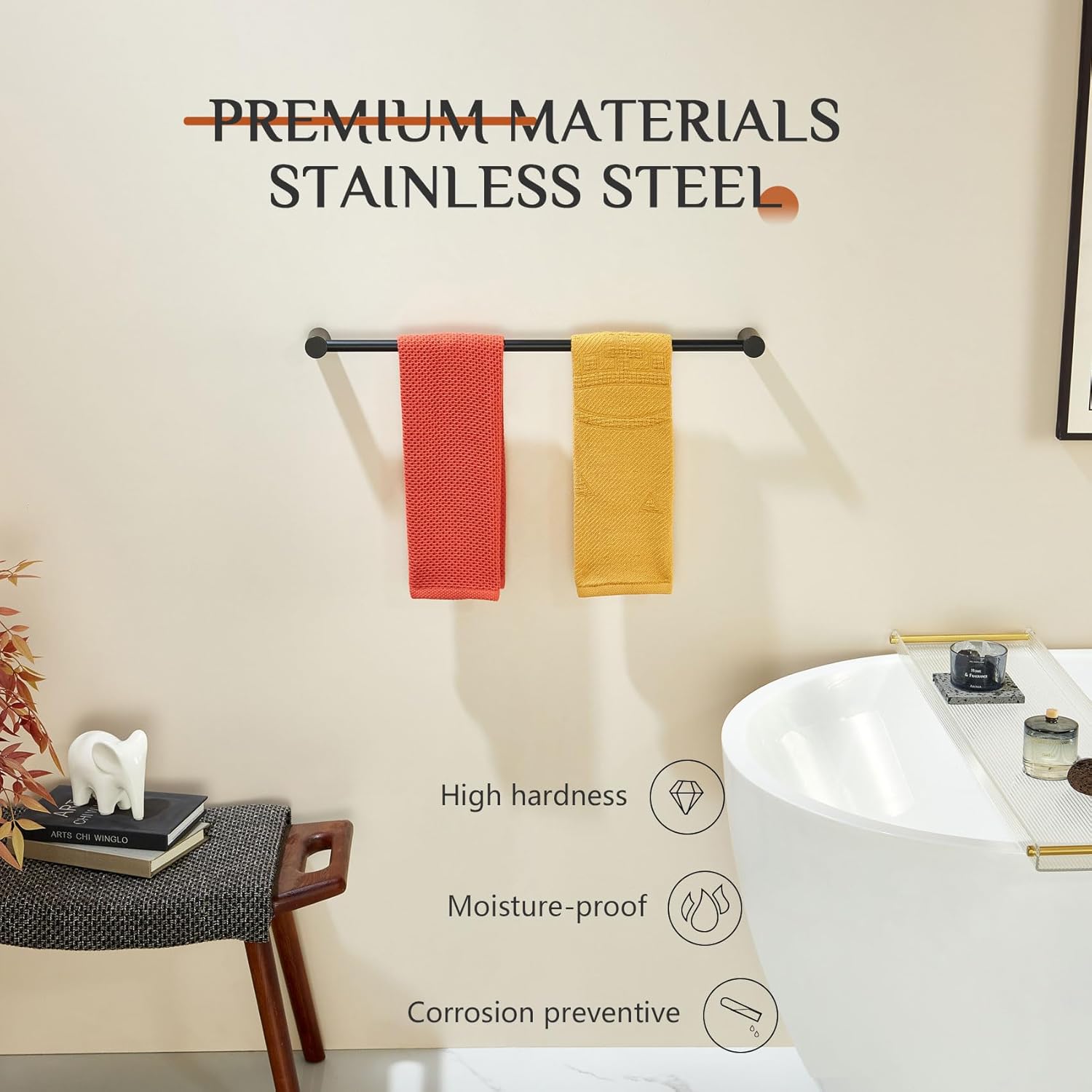- ◄ MATTE BLACK ► The bathroom towel holder is matte black finish which is fingerprint-proof and water-proof. And the surface covering is resisting daily scratches, corrosion, and tarnishing