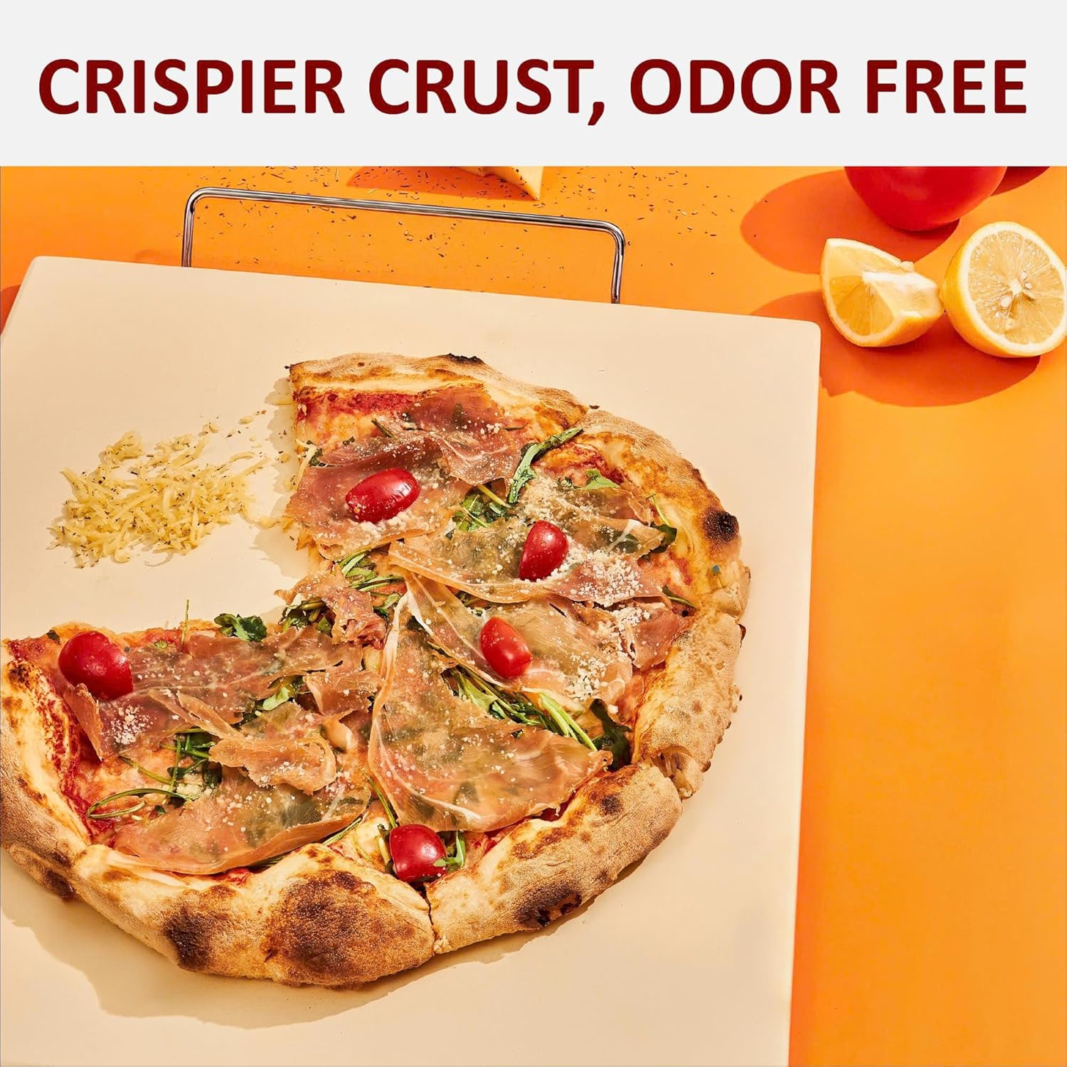- MAKE CRISPIER CRUST – Thick cordierite stone absorbs and distributes heat evenly, preventing sogginess and ensuring a perfectly golden, crispy crust.
