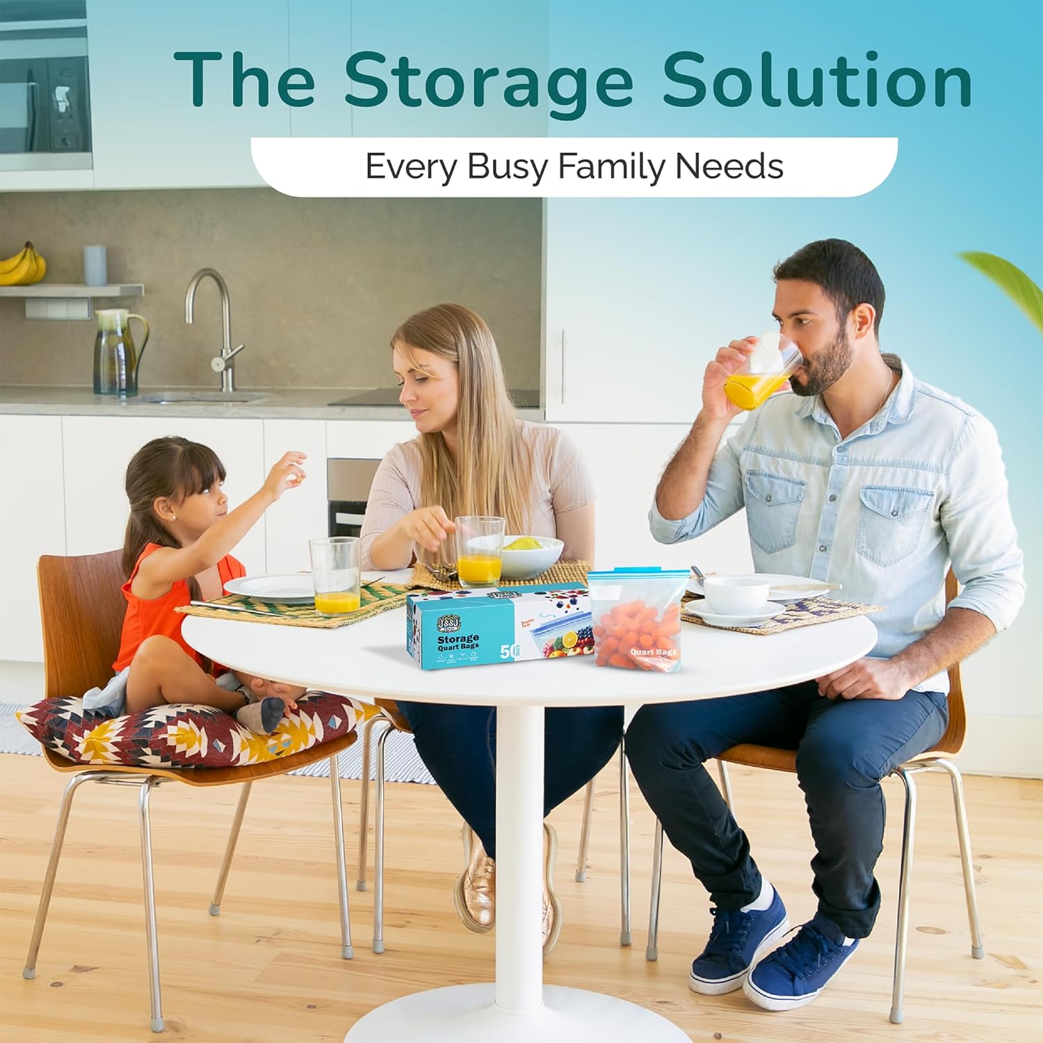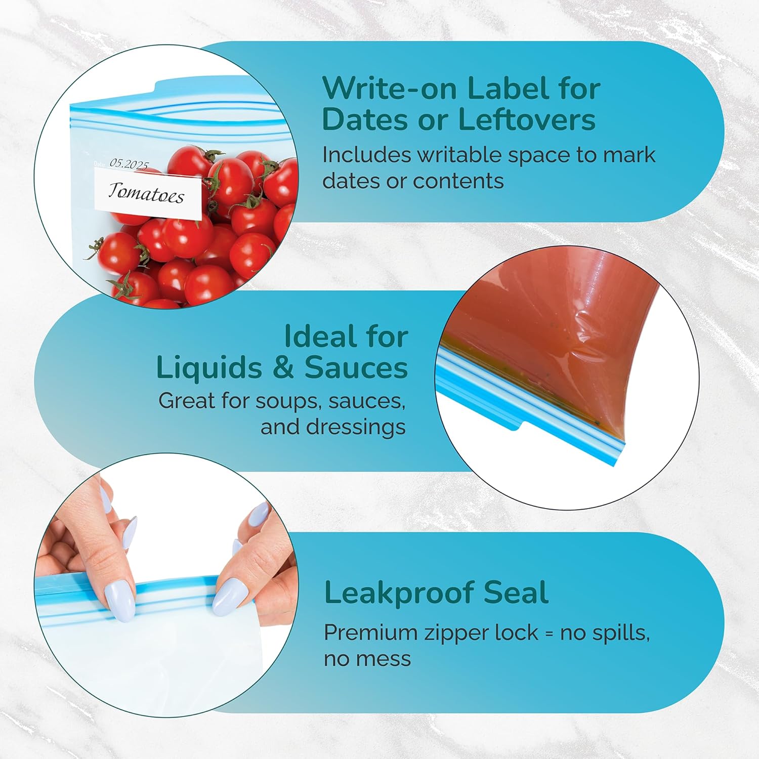 - 🔹 50 Count Storage Quart Freezer Bags — Reusable quart bags (8.6" x 7.3" x 2") with expandable bottom for meal prep, snacks & freezer meals; also work as freezer bags quart size, plastic bags for food, and sandwich bags for fridge & pantry storage