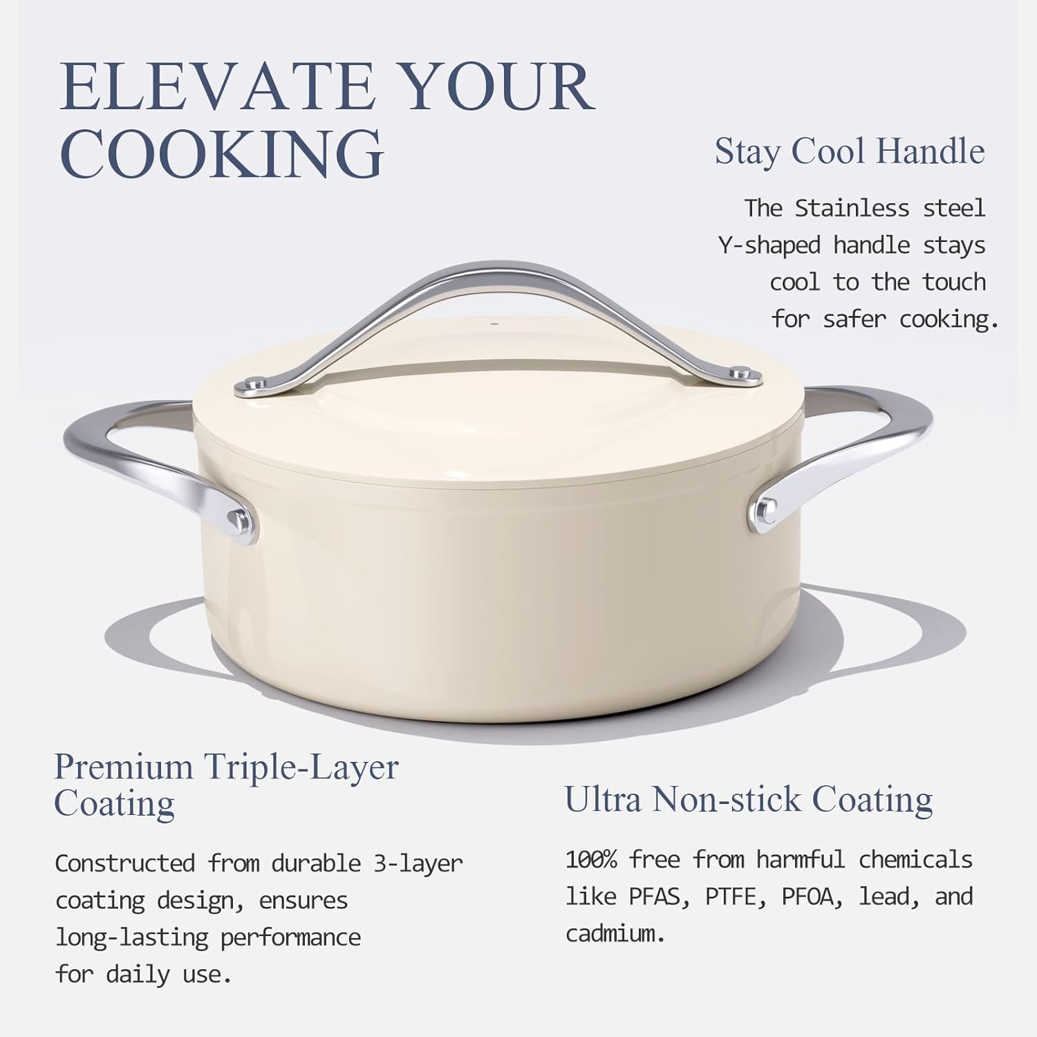Stock Pot 4.5qt Dutch Oven with Lid (9.5") Nonstick Ceramic Coated Non-Toxic PFAS-Free Even Heat Distribution for Braising, Baking Bread & Soups, Compatible for All Cooktops(Induction/Gas/Electric) Oven Safe to 500ยฐF (Cream)