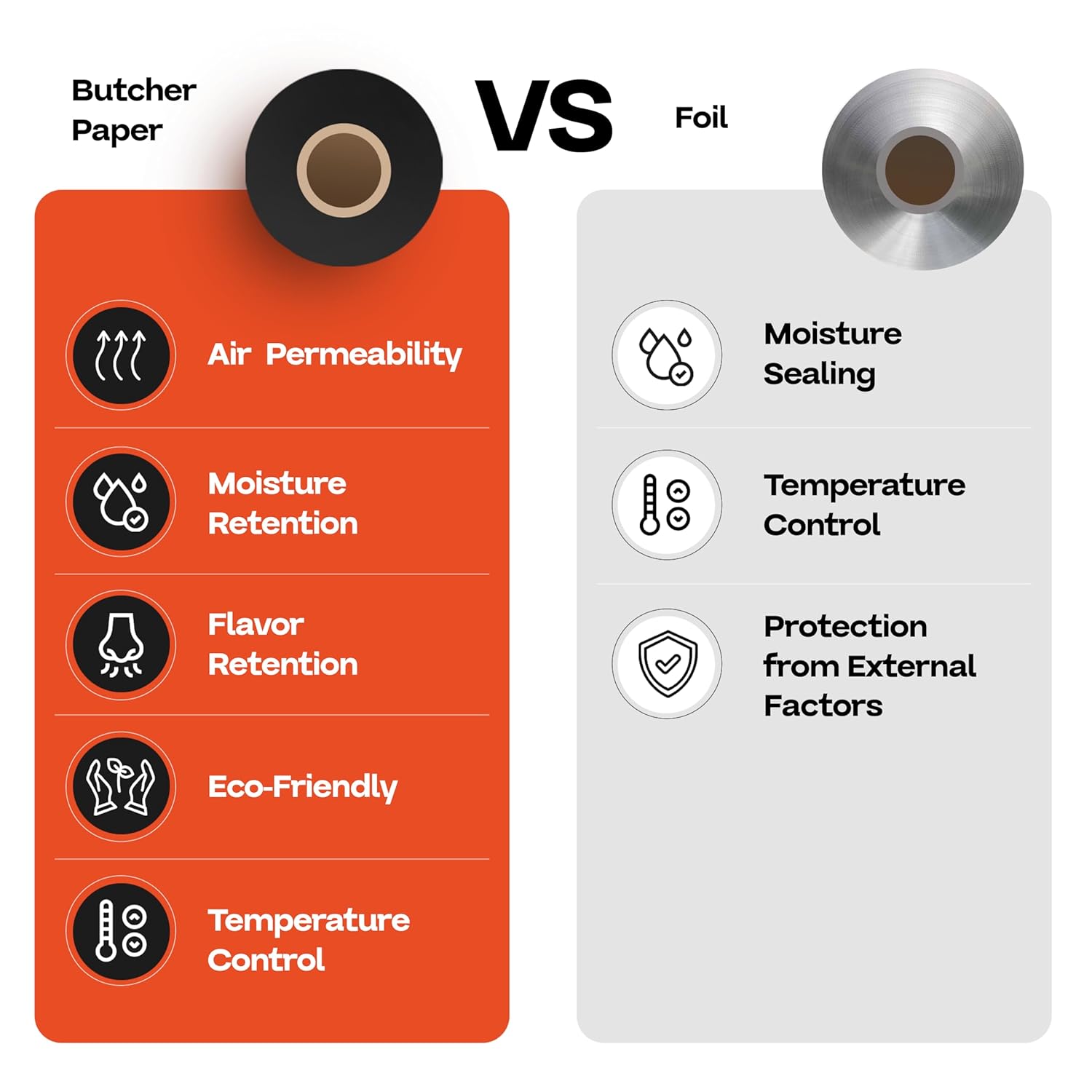 - BREATHABLE ALTERNATIVE TO FOIL: Unlike foil, our roll of butcher paper allows airflow, keeping meat juicy and flavorful while promoting even cooking. Perfect for grilling and smoking, it offers a natural way to achieve tender, mouthwatering results.