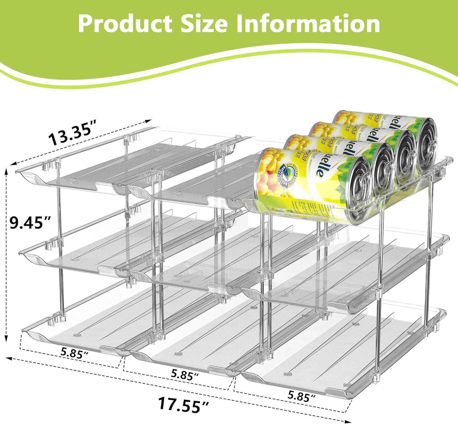 - Suitable Size: Measuring 17.4'' x 13.5'' x 9.6'', this can food organizer for pantry holds up to 24 standard soda or beverage cans. Ideal for kitchens, pantries, and countertops. Please confirm can sizes before purchasing