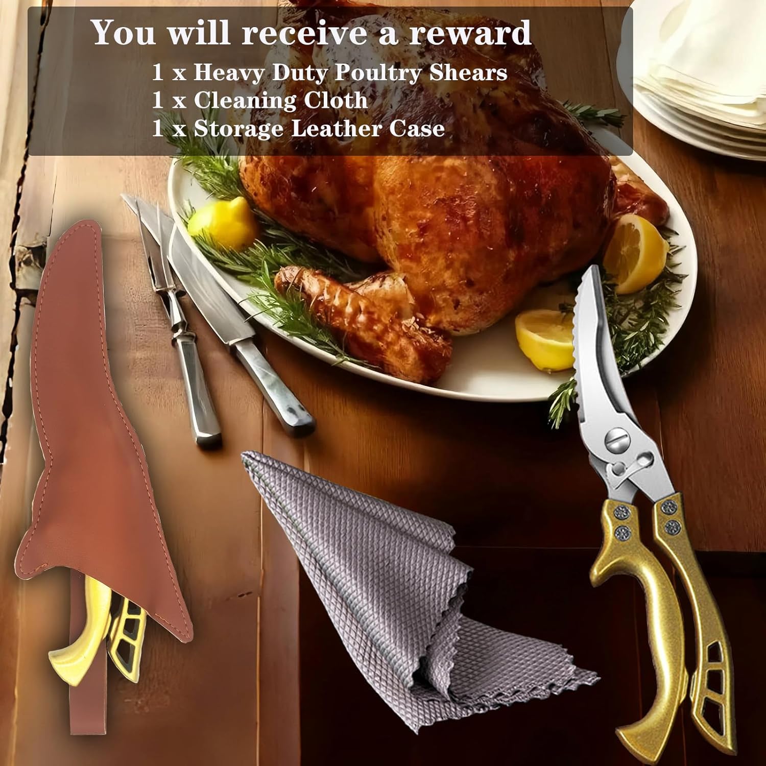 - ANDONG heavy duty kitchen scissors are a gift for you to express your love or filial piety. It is your best choice to give it to your favorite person. Including 1 heavy duty kitchen shears, 1 Leather storage bag, 1 cleaning cloth.Come with 360 day Hassle-Free Replacement. Kitchen utensils and kitchen essentials for a new apartment, new home.