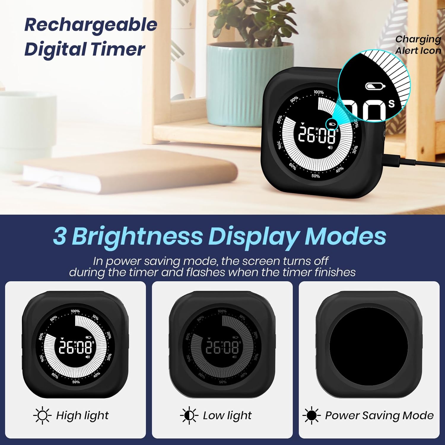 - 2 Brightness Levels and Power-Saving Mode: The digital timer offers two brightness settings—high and low—so you can choose the appropriate level based on the surrounding light conditions to avoid discomfort or difficulty reading the screen. Additionally, it features a power-saving mode where the screen turns off while the timer is running and flashes when the timer ends.