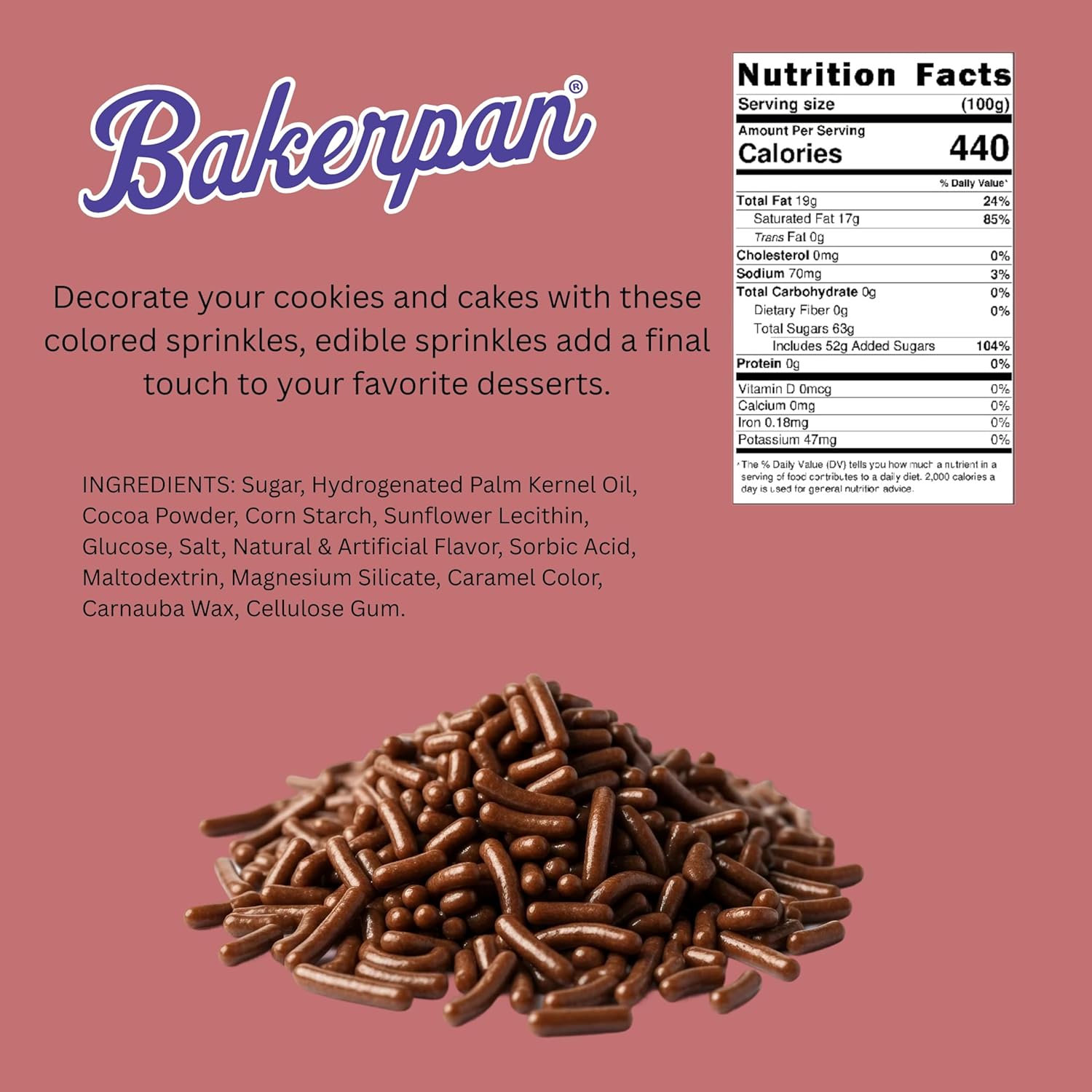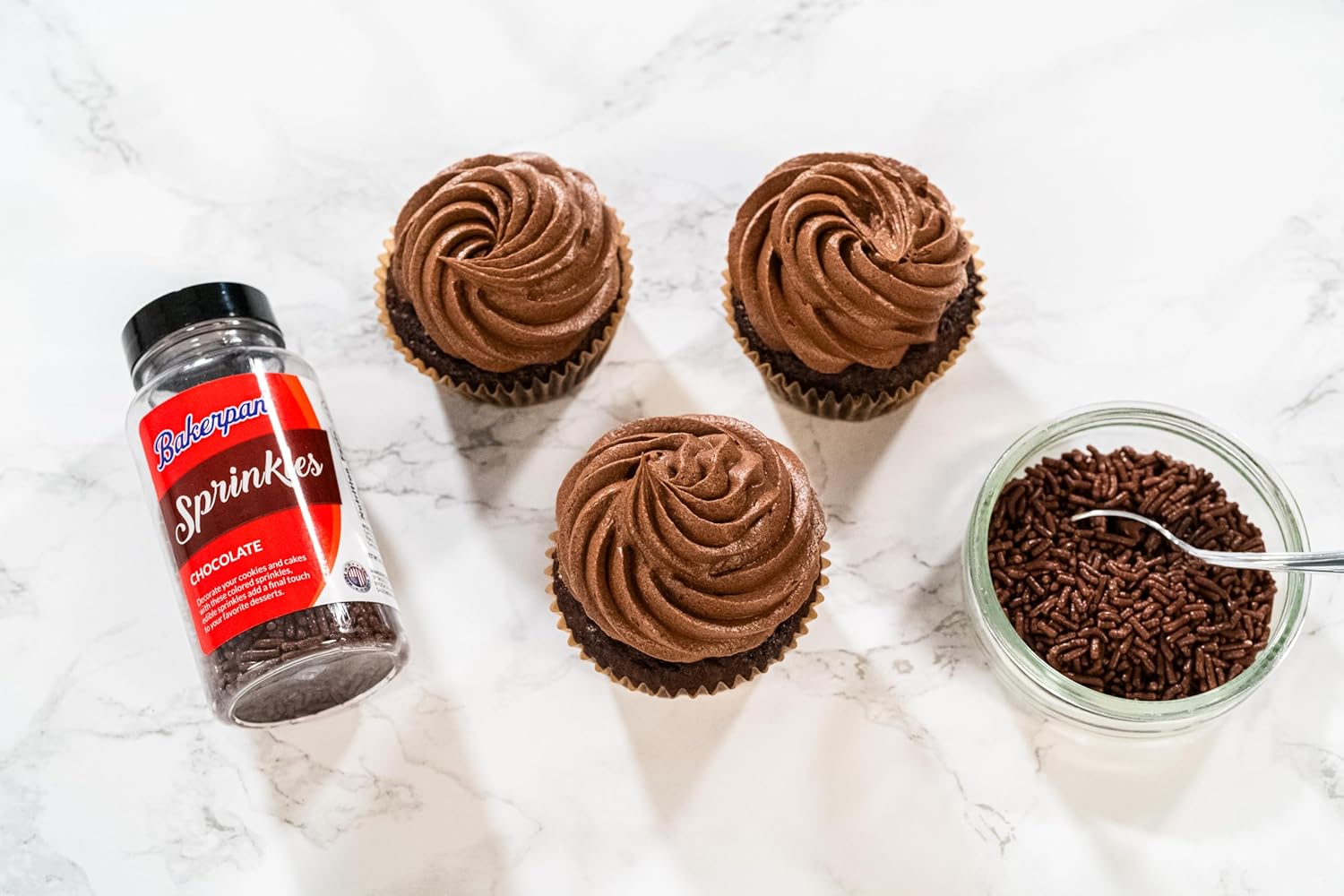Bakerpan Chocolate Sprinkles for Cake Decorating - 2 Bottles of 4.3 Ounces Chocolate Jimmies Sprinkles for Ice Cream, Baking, Cupcakes, Cookies (Made in USA)