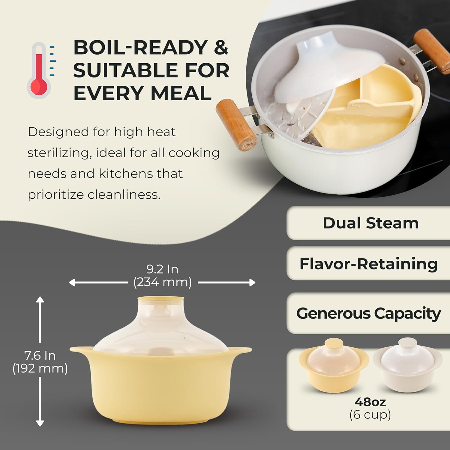 - Preserves Nutrients & Flavor: Steam like a pro! Our clay-pot-inspired silicone steamer locks in vitamins and natural tastes without added water, creating tender, wholesome meals perfect for little ones and health-focused families