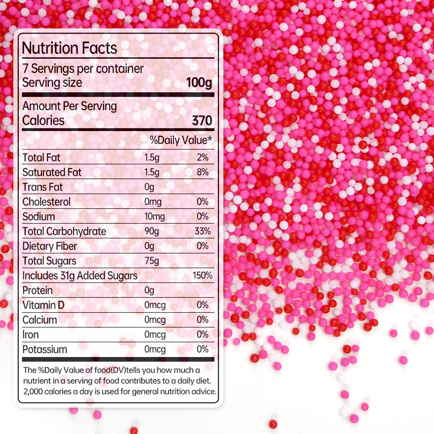 - The Edible Pink Nonpareils Sprinkles are a mix of red, pink and white candies. They are a delight for festivals, decorating cupcakes, cakes, donuts, cookies, ice cream, and waffles, adding romance and love to your baking.