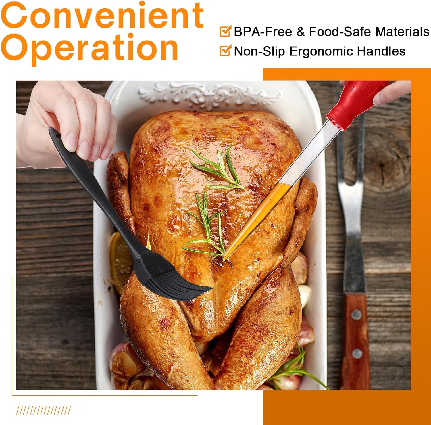 - Package Includes: our cooking tool set contains 2 pieces nylon baster (black and red), 1 piece of silicon basting brush, 2 pieces cleaning brush, keeping your hands away from heat