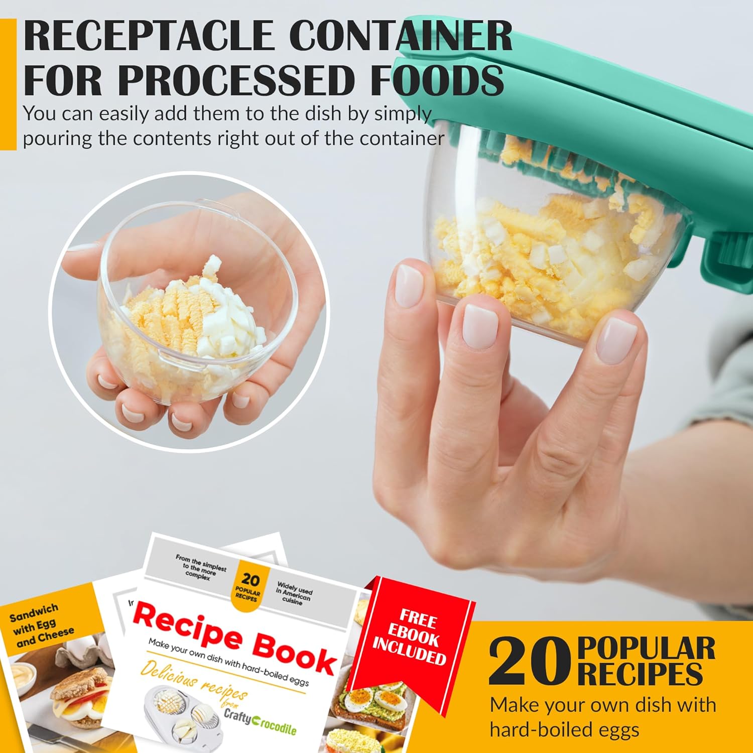 CraftyCrocodile Egg Slicer for Hard Boiled Eggs - 3 Slice Modes Egg Cutter, Heavy Duty, Stainless Steel Dicer - Kitchen Chopper Tool for Strawberry, Mushroom, Grape, Cherry Tomato - Mint Green