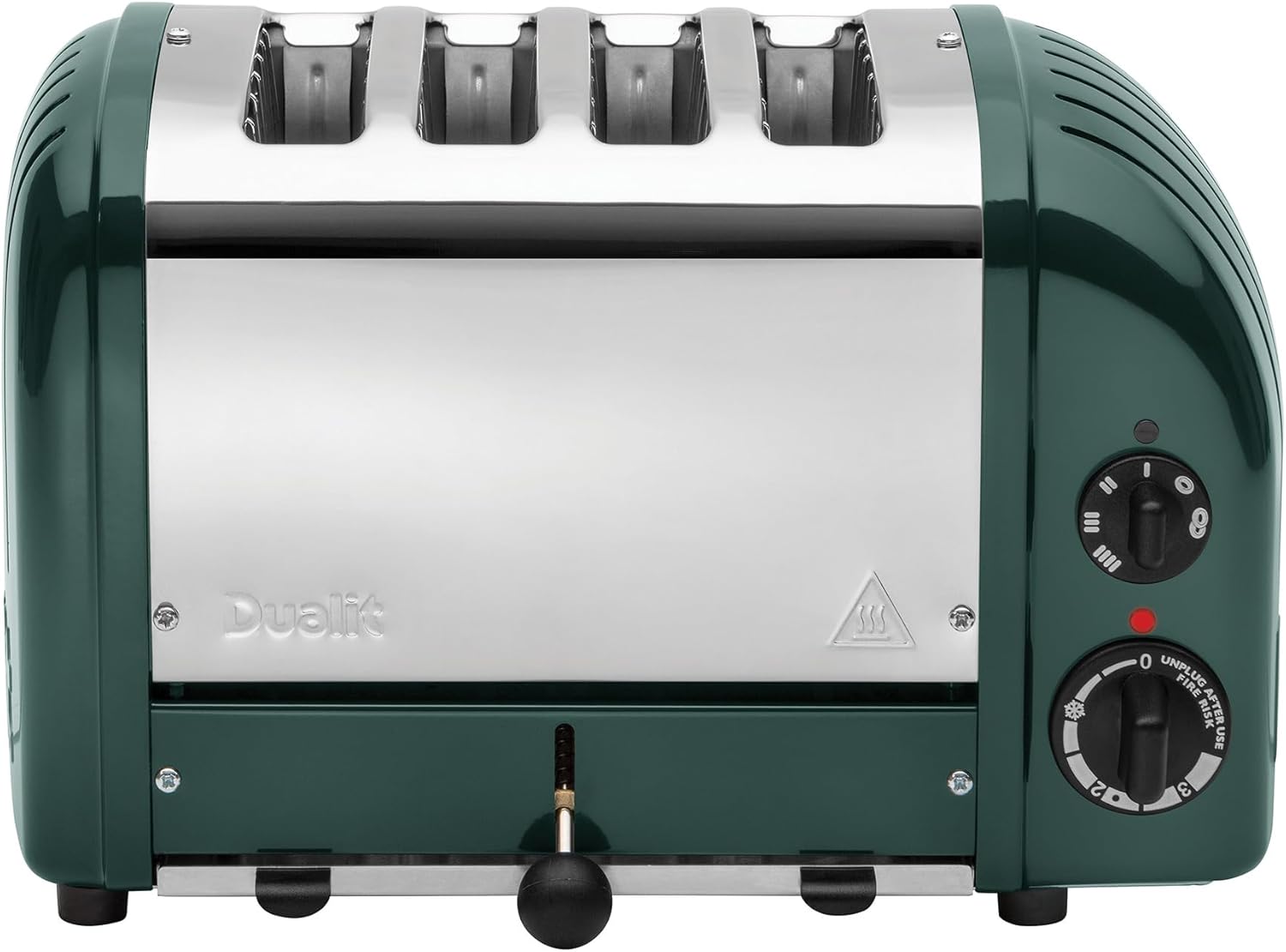 Dualit Classic 4 Slice NewGen Toaster - Stainless Steel - Hand Built in the UK - Replaceable ProHeat elements - Defrost Bread - Mechanical Timer - Evergreen Classic Toaster