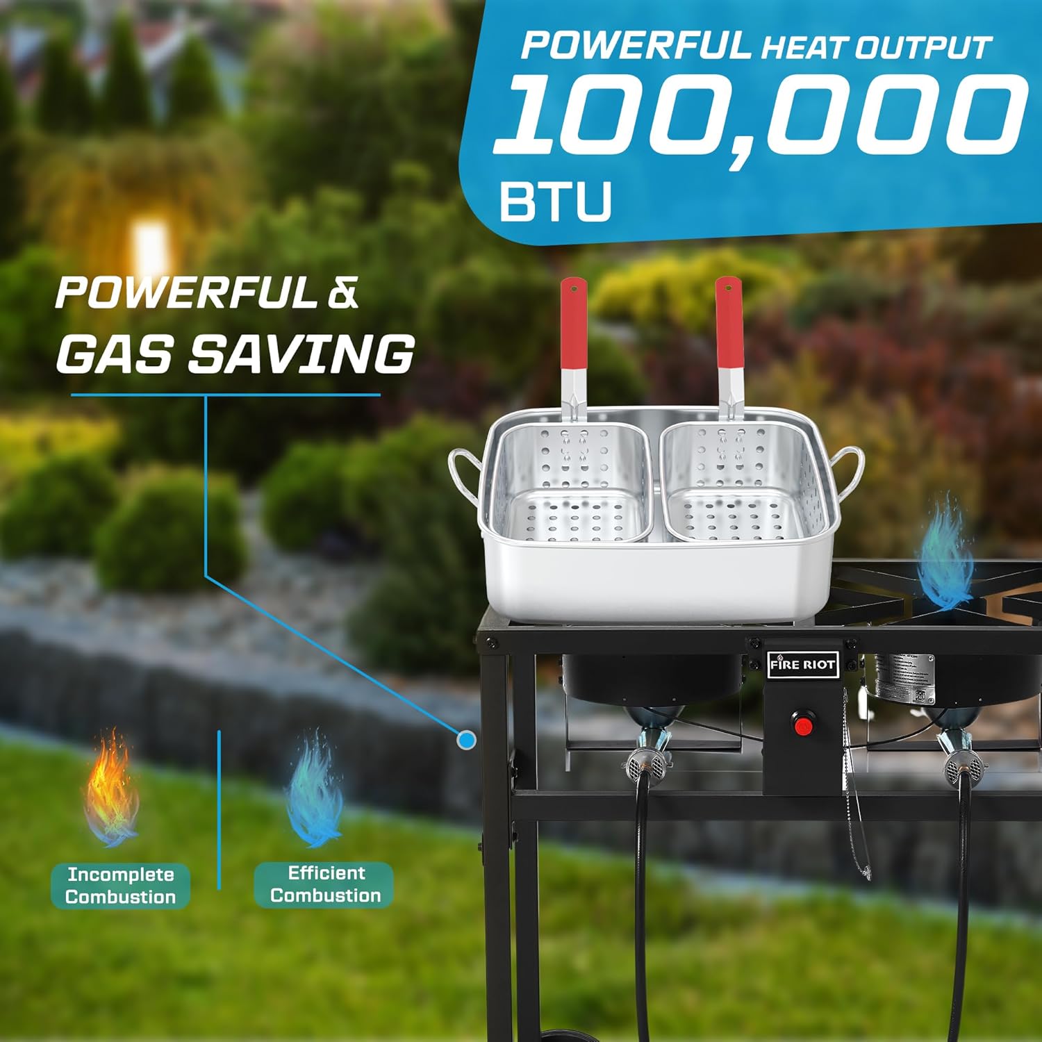 Deep Fryer with Double Burner Propane Stove Outdoor - 2-18QT Aluminum Pots & Frying Baskets- Perfect for fish fryers, Wings, Fries, Cajun Fry