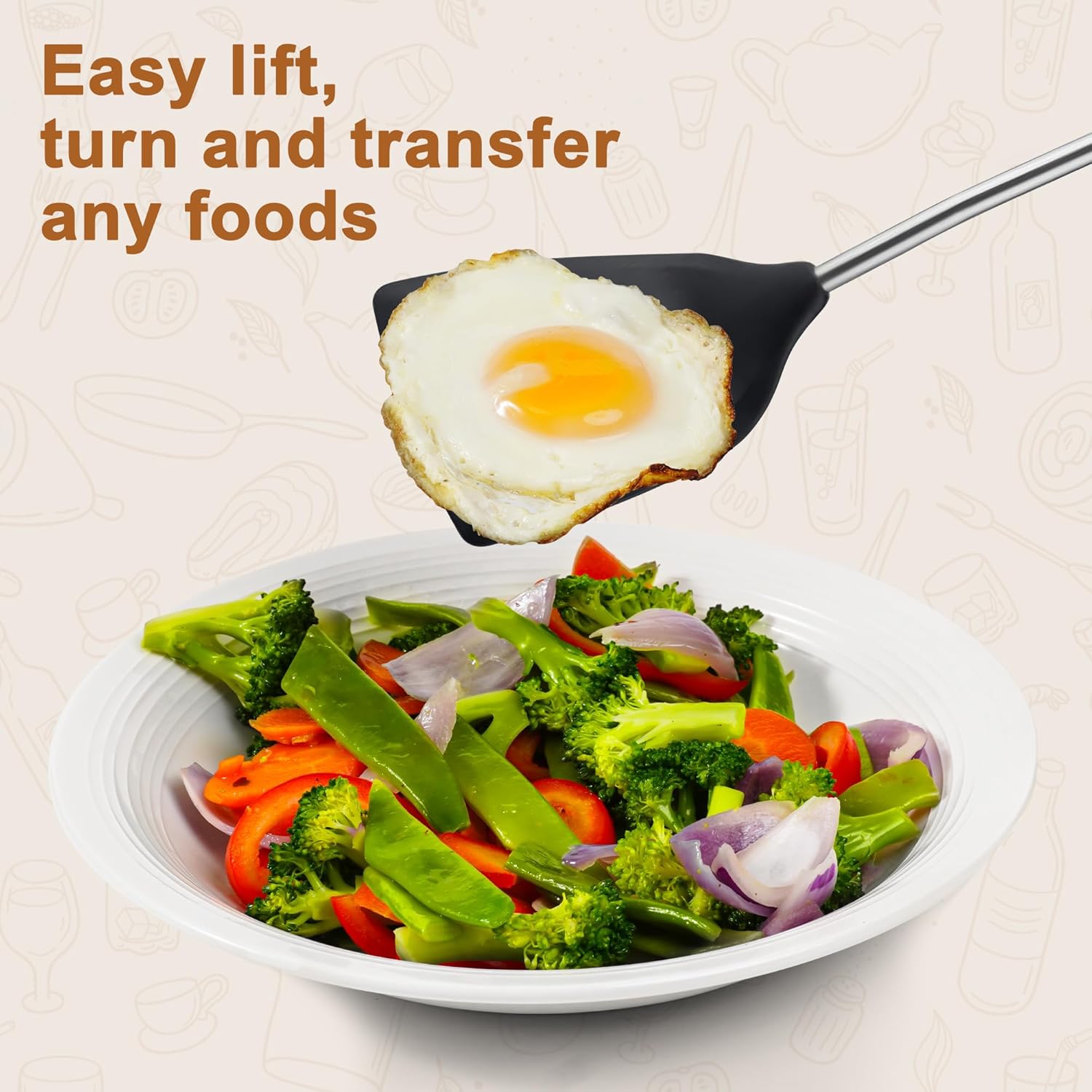 FJNATINH Silicone Spatulas and Turner Set - Stainless Steel Wok Tools, Wok Utensil, Heat Resistant Rubber Spatulas for Fish, Eggs, Pancakes, Wok,2 Pack
