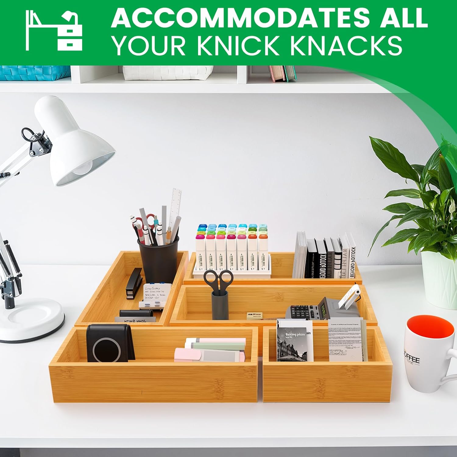 Bamboo Drawer Organizer Set, 5-Piece Storage Trays for Kitchen, Bathroom, Office Desk, Makeup & Junk Drawers,Utensils