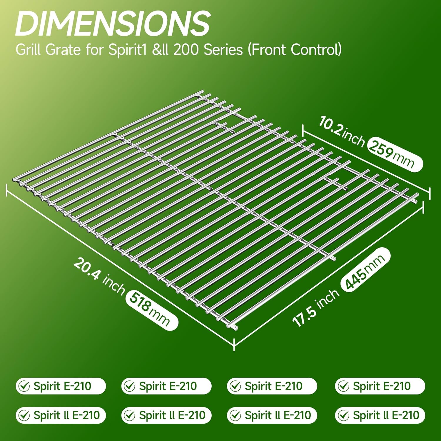 - 17.5 inch Grill Cooking Grates for Weber Spirit E210 E-220 S210 S-220 Spirit 200&Spirit II 200 Series Gas Grills with Front Control, Stainless Steel Grates Replacement Parts for Weber 7637 Gas Grills