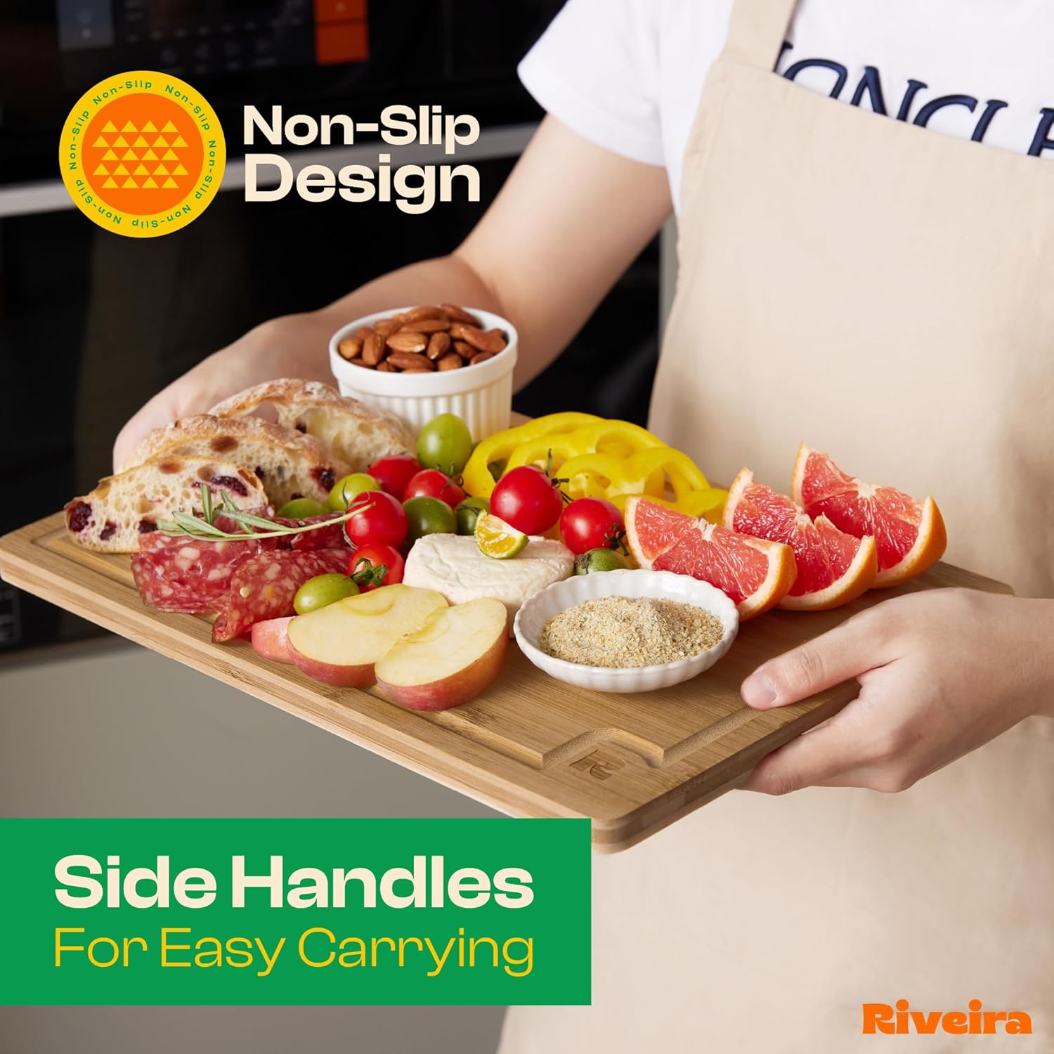 - Handle Everything with Confidence — The built-in handle holds of the bamboo cutting boards for kitchen are designed for handling everything with confidence. Pre-oiled and ready for immediate bewilderment, this brown wooden chopping board is not just convenient for the kitchen mess but has a unique design to maintain, ensuring a performance that is both comfortable and clean for chopping boards for kitchen. Riviera non toxic cutting boards for kitchen will be perfect in your kitchen.
