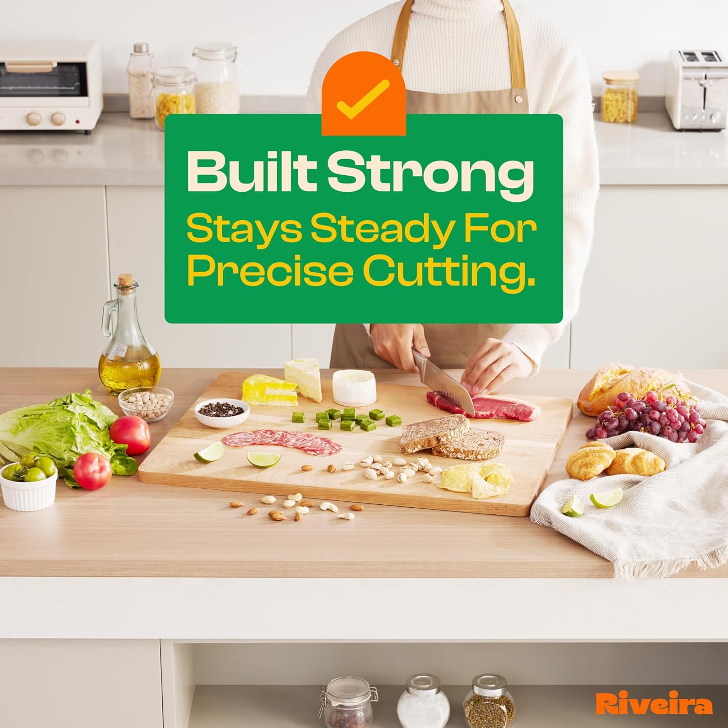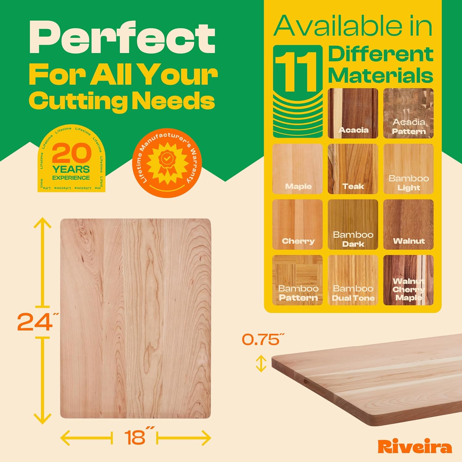 - Premium Crafted Cherry — Take a detour from traditional kitchen aesthetics with this cherry wood board crafted from 100% natural cherry. Beyond being an unconventional and eco-friendly choice, the chopping board wood proudly showcases the environment friendly and organic cherry. This wood cutting boards for kitchen counter adds an unexpected touch of confidence and style to your once-orderly culinary space. Riviera's wooden chopping boards for kitchen will be there for many years to come.