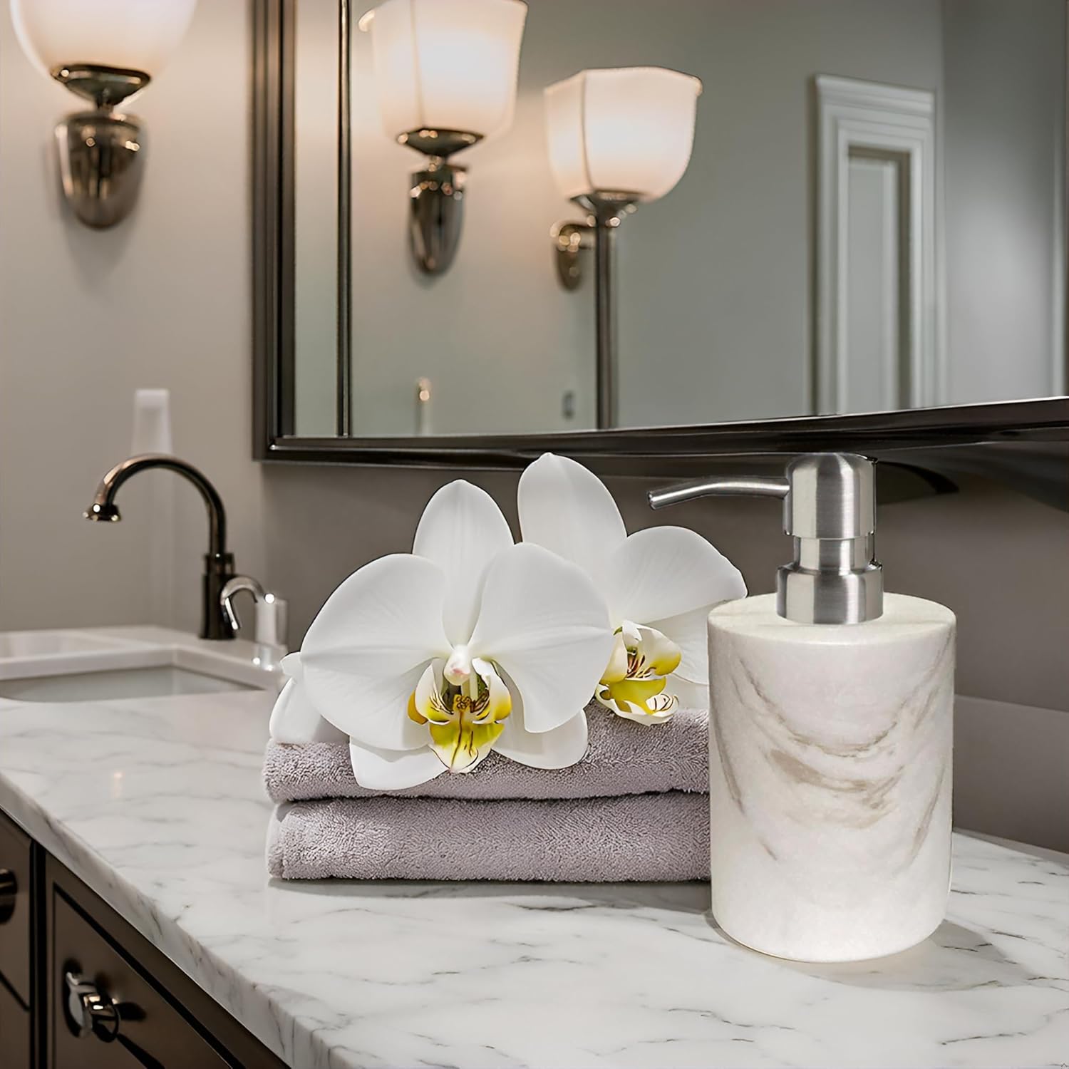 - Versatile: Versatile in your daily life, this white marble hand soap dispenser is perfect for dispensing lotions, essential oils, shampoos, body washes and more, combining convenience and practicality.