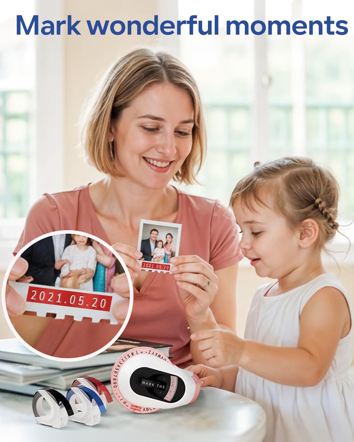 - 【Inkless 3D Embosser Label Maker Machine with Tapes】:No ink, electricity, batteries, charging or downloading apps to connect to your phone or computer. Save Money, Use Simple. "Rotate-Press-Cut"Turn the dial, select letters, numbers, symbols, and press the handle to print a clear 3D Embossing Tapes. Embosser can print anytime and anywhere, can satisfy the need of the diversification of the age. This embossing label machine is a powerful tool for unleashing creativity and meeting everyday printing needs