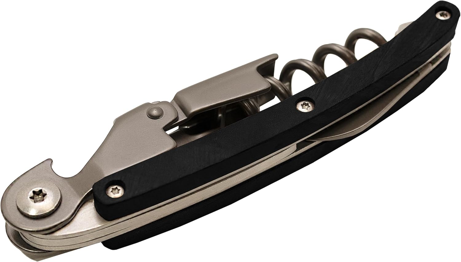 Waiters Wine Key with Corkscrew Quick Bottle Opener and Micro-Serrated Blade- Ebony Wood Handle.