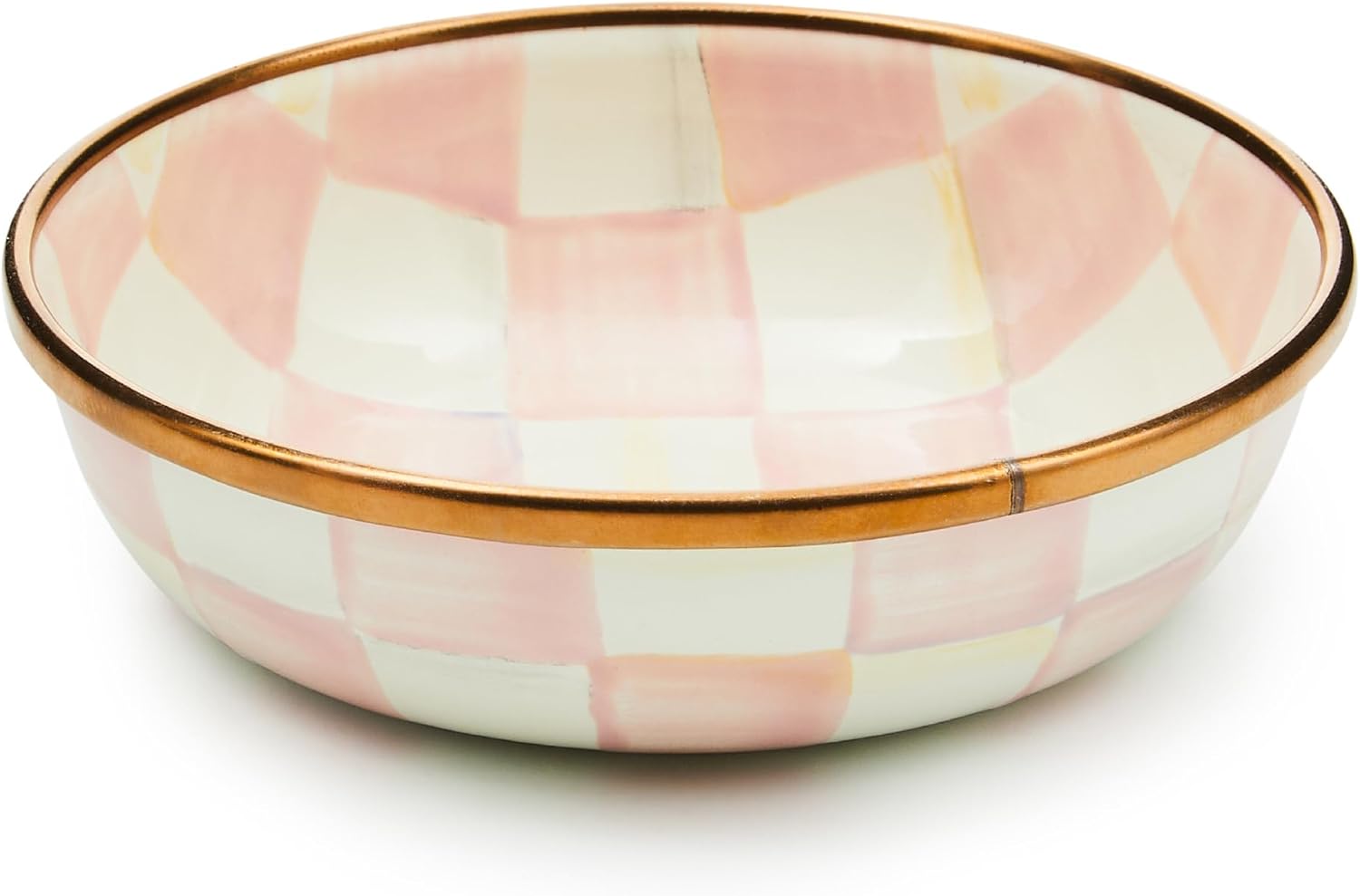 - ENTERTAINING ESSENTIAL: Accompany any dish with a tasty dip or sauce in this small bowl. It features our pretty Rosy Check pattern with glossy, high-contrast hand-painted pink-and-white checks on enameled steel.