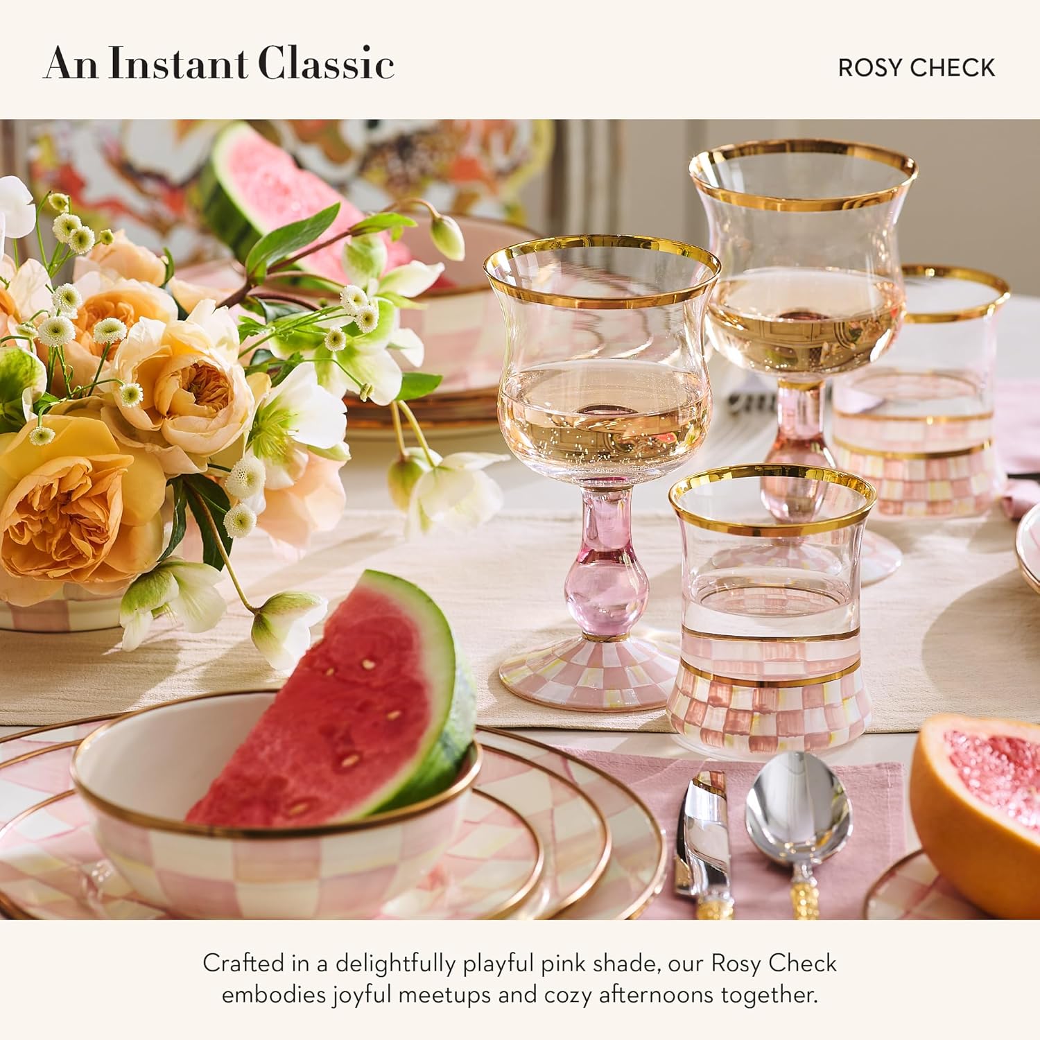 MACKENZIE-CHILDS Enamel Dipping Bowl, Small Serving Bowl for Entertaining, Pink-and-White Rosy Check