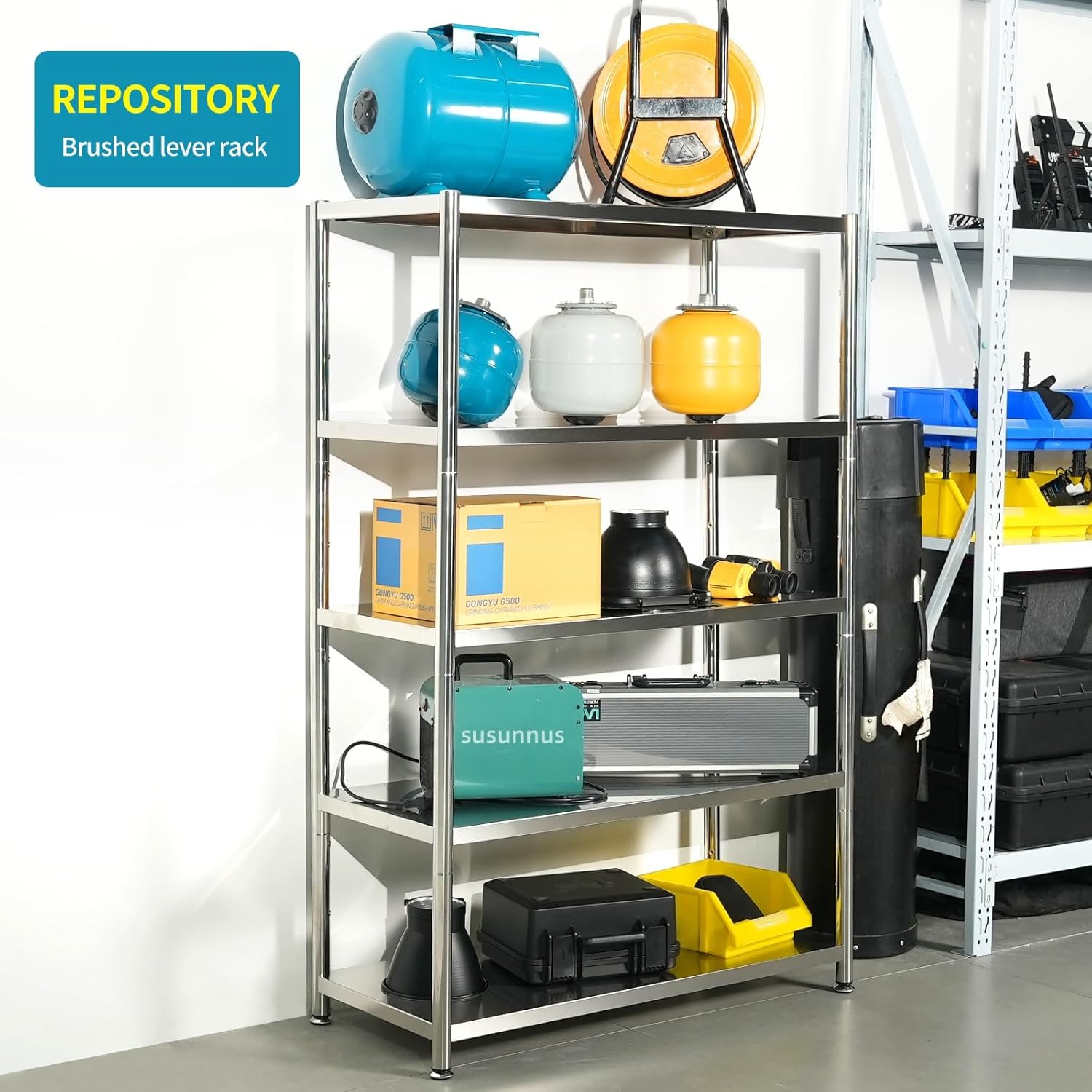 - Heavy Duty Shelving: Open, large stainless steel shelving designed for multi-layer storage. Perfect for kitchen use, accommodating various household appliances and tableware. In warehouse settings, it effectively holds a range of large industrial supplies