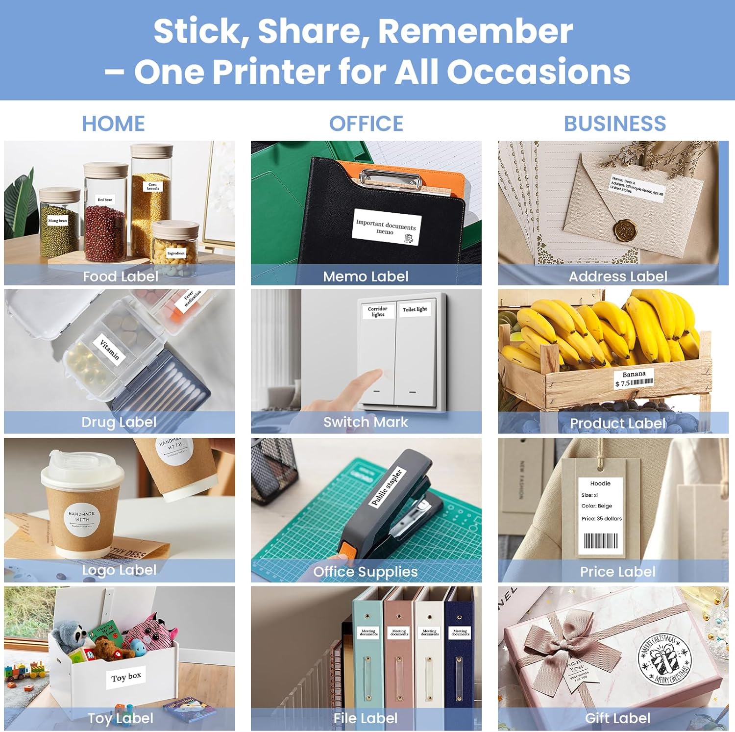 - 【Package Included】The thermal label printer package contains: 1 printer, 4 rolls of sticker paper<b>(1 roll already in the printer)</b>, 1 user manual, and 1 Type-C data cable. Note: Charging adapter is not included.【Perfect Gift】Looking for a unique and practical gift? Our Label Printer is the ideal choice! Whether for organizing, crafting, or adding a personal touch, it’s a gift that keeps on giving.