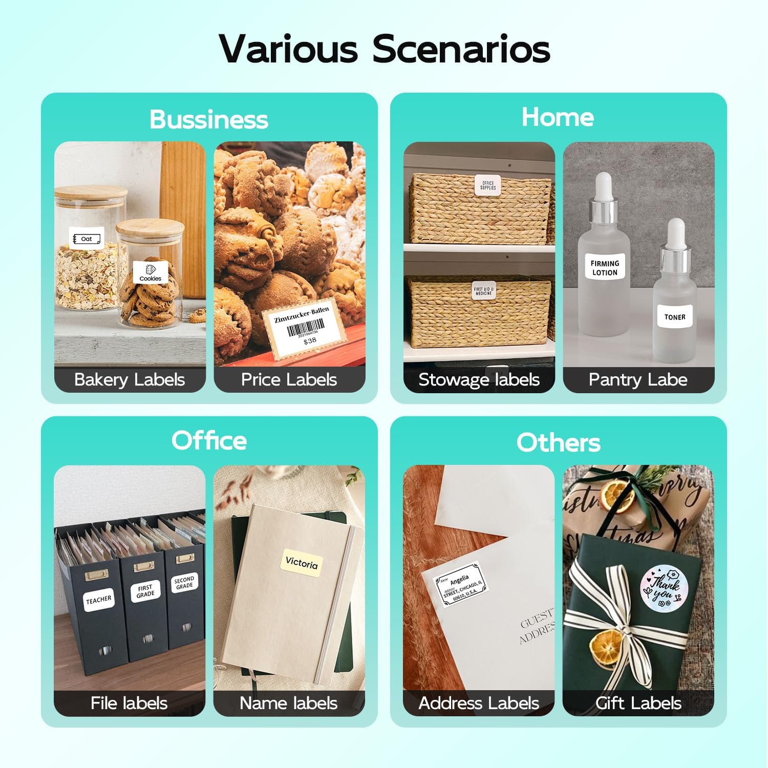 - 【Multifuncional Usage】Phomemo M120 Label Printer supports 20-50mm label size, built-in size axis, convenient for you to calibrate the label size. The label printer can support printing barcode, 2D code, address, name, jar labels, food labels, storage labels, holiday blessing labels and so on. Whether you are a housewife or a small businessman, the thermal label printer is the best choice for efficiency