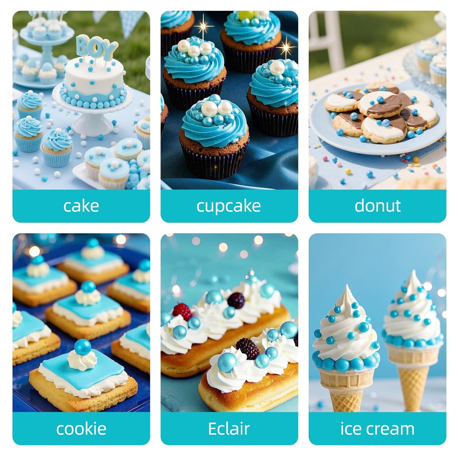 - Luxurious Blue Pearl Sprinkles: These bright Blue pearl sugar sprinkles mixes are classy for wedding and birthday cakes,holiday baking and decoratingAnd you can also use them to embellish cookies, cupcakes, ice cream, fondant and pastries for added allure. Decorating your favorite baked dessert with our mixing-sized lustrous Blue Pearl Sprinkles will surely elevate your presentation,and more to add party fun