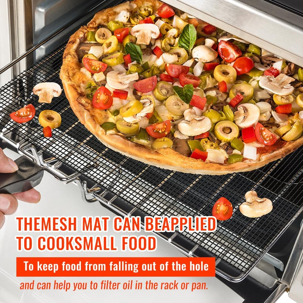 - 🎁【𝐑𝐞𝐮𝐬𝐚𝐛𝐥𝐞 𝐟𝐨𝐫 𝐇𝐮𝐧𝐝𝐫𝐞𝐝𝐬 𝐭𝐢𝐦𝐞𝐬】: Our air fryer baking sheet for Ninja can be reused by many times, and the mesh liner will be your right choice for grill baking for your house party or Toaster Oven Cooking.